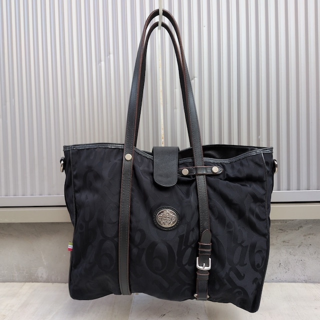 美品/オロビアンコOrobianco/ナイロン×レザー/柄物/トートバッグ/黒/UA10KB6/0001/