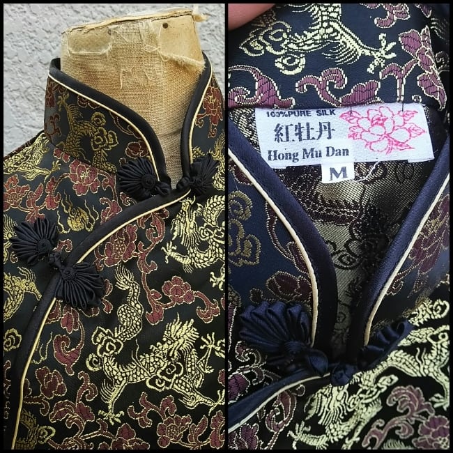 【中国】新品/デッドストック/シルク/チャイナ服/チャイナドレス/チャイナワンピース/コスプレ/M/