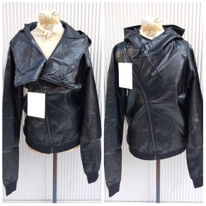 アンリラクシングUnrelaxing/新品/PUレザー/Fレザー/変形/斜めジップ/ハイネック/ライダース/パーカー/黒/L/定価15120/