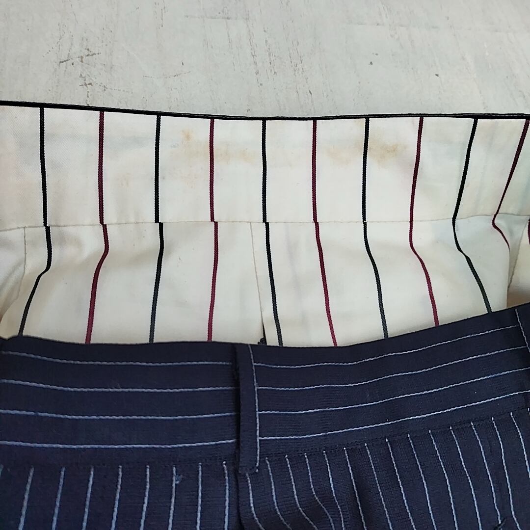 【最高級/銘店/80s】美品/銀座壱番館ICHIBANKAN/ヴィンテージ/ビンテージ/古着/オーダーメイド/ストライプ/スラックス/パンツ/ネイビー/TB28TMO5/0001/