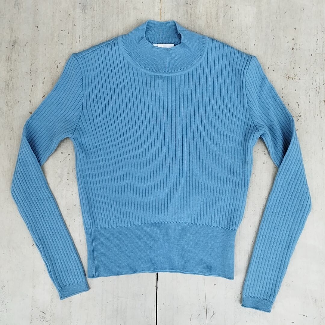 【90s/00s】美品/YSL/イヴサンローランYVES SAINTLAURENT/オールド/ヴィンテージ/ビンテージ/古着/福助/モックネック/ウール/ニット/セーター/M/水色/T0628TMO3/052/