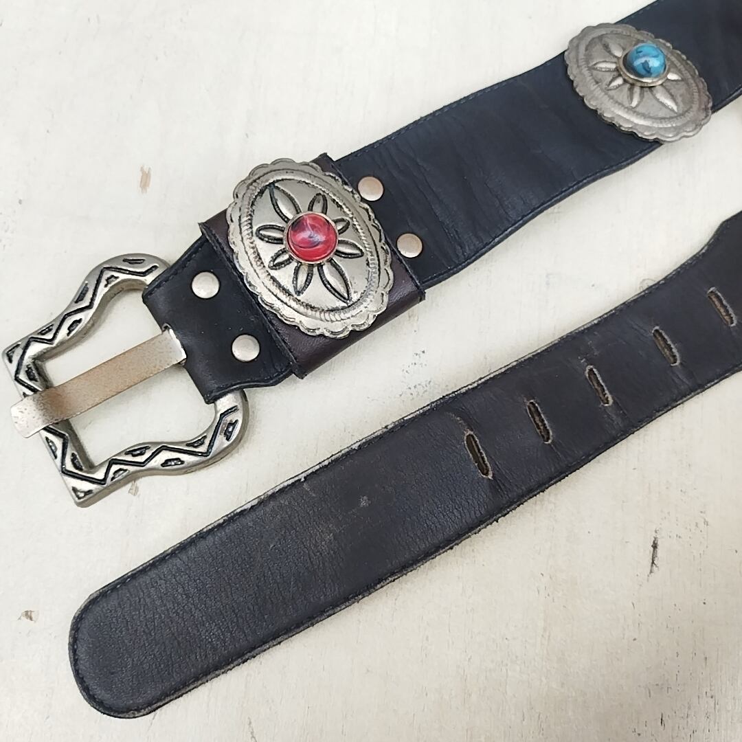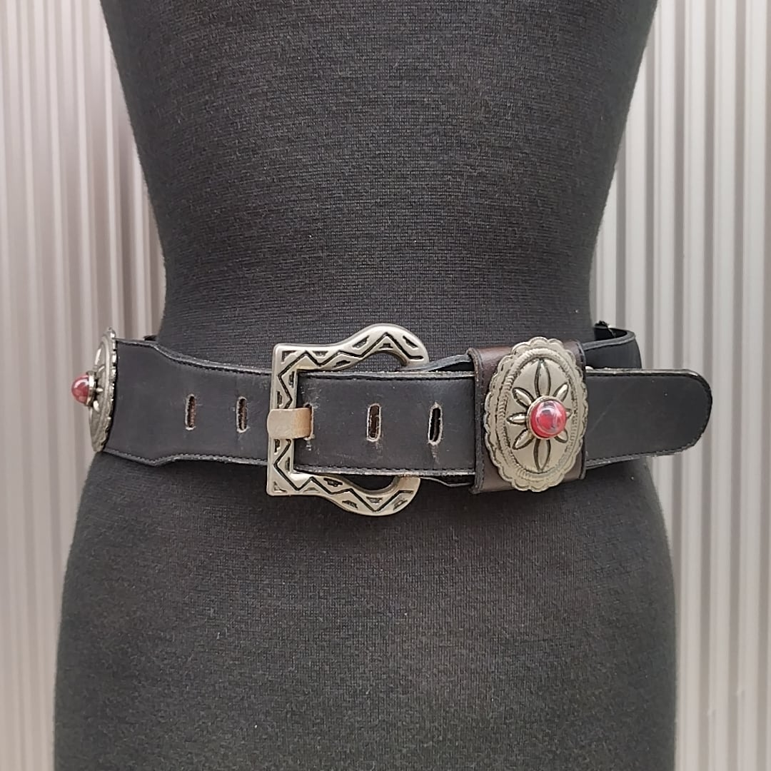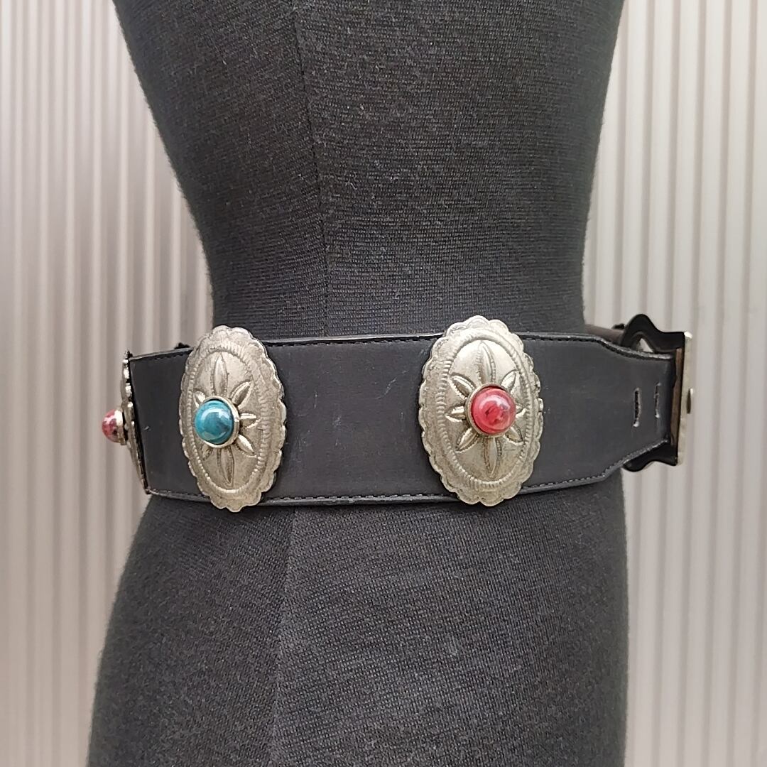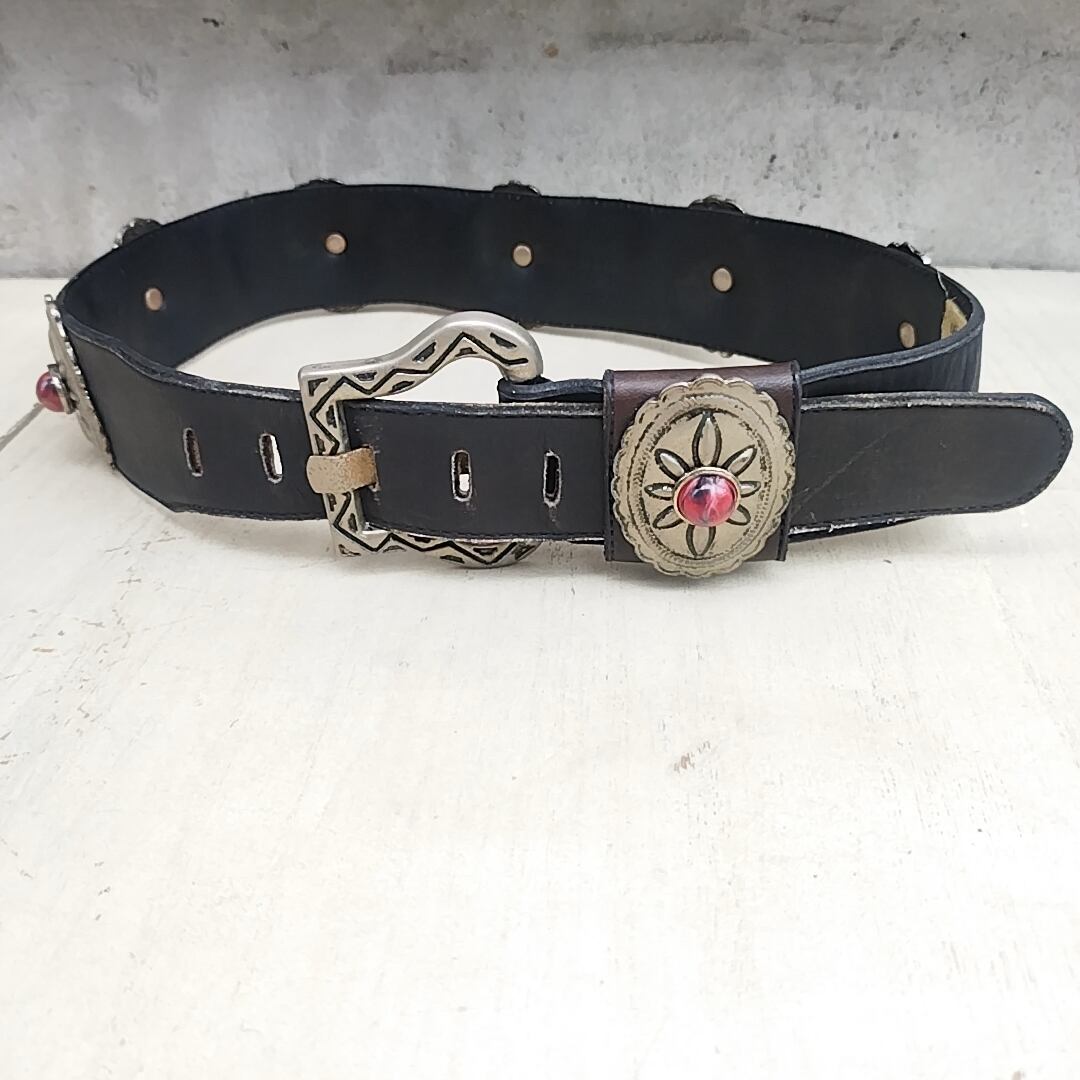 【稀少/80s/USA製】NINA ARJANI/ビンテージ/ヴィンテージ/アメリカ古着/コンチョ/牛革/ウエスタン/レザーベルト/S/黒/T0601MNI3/001/