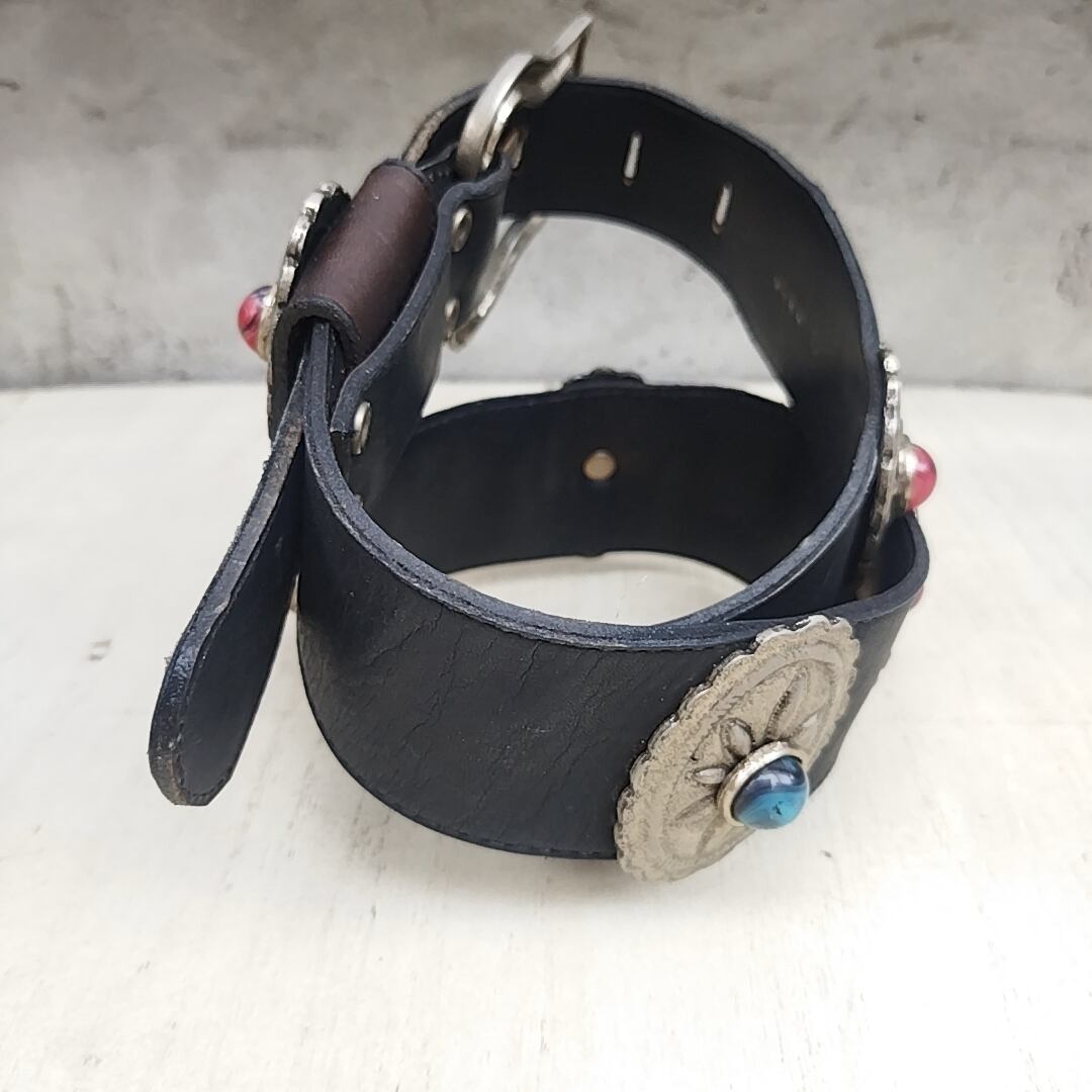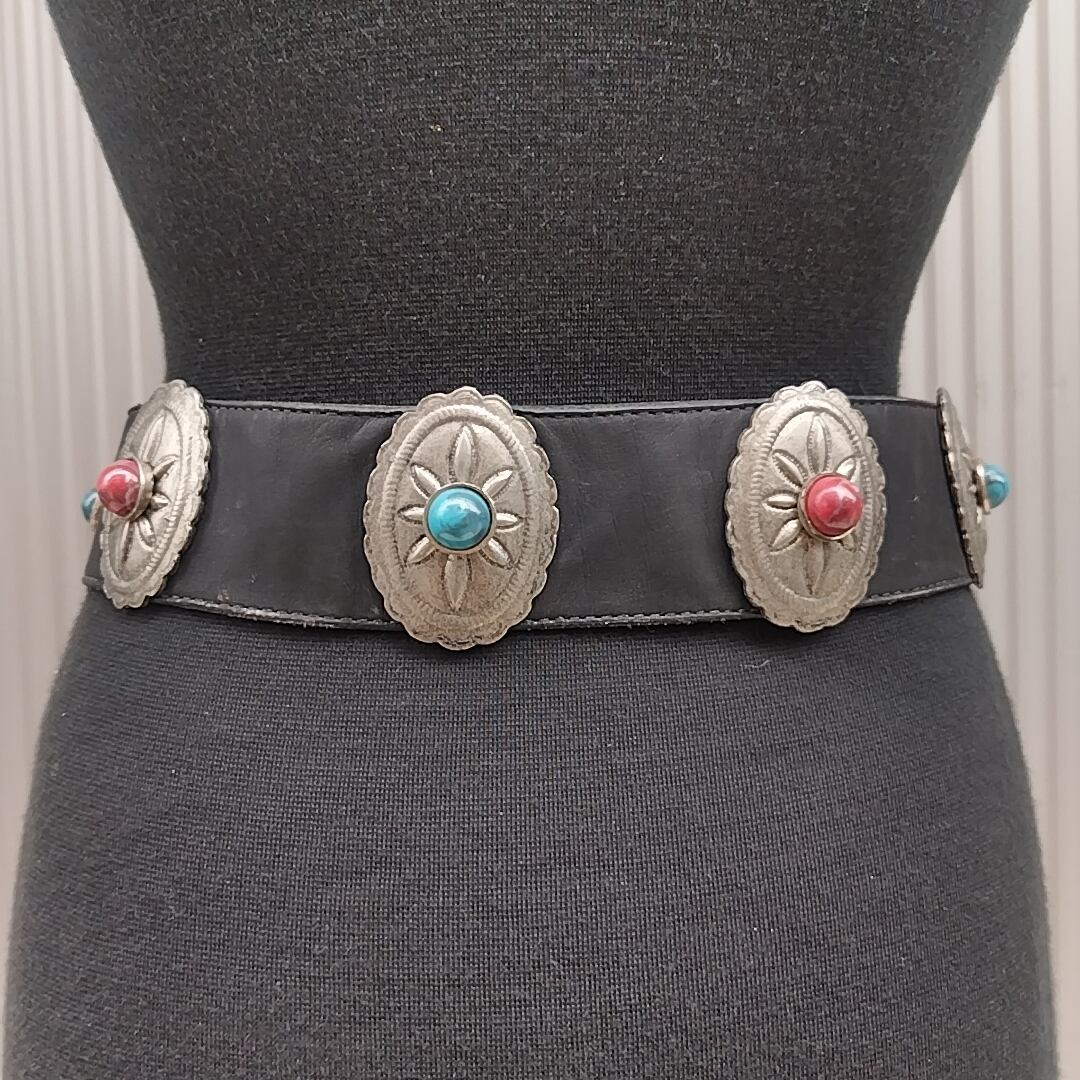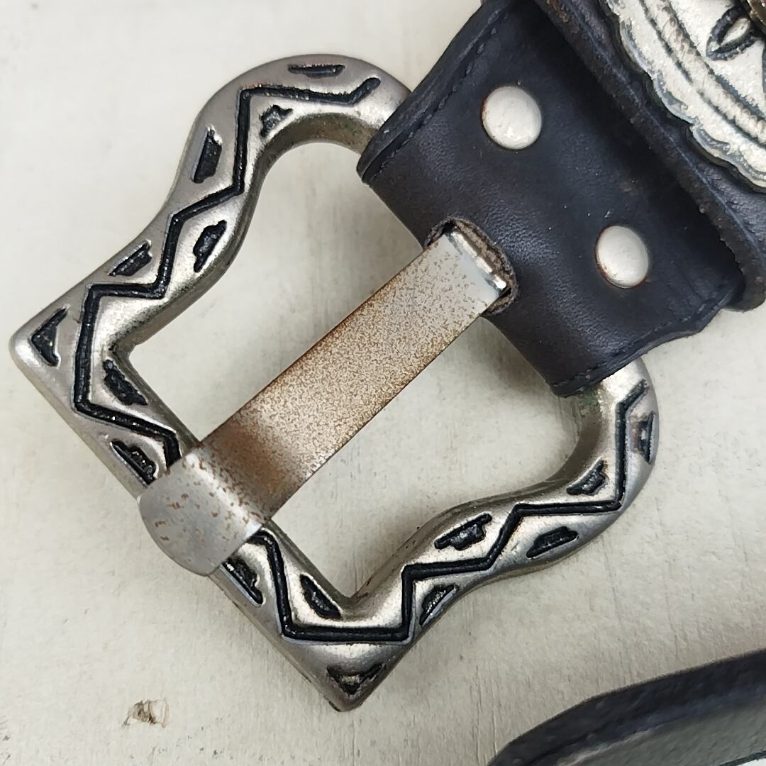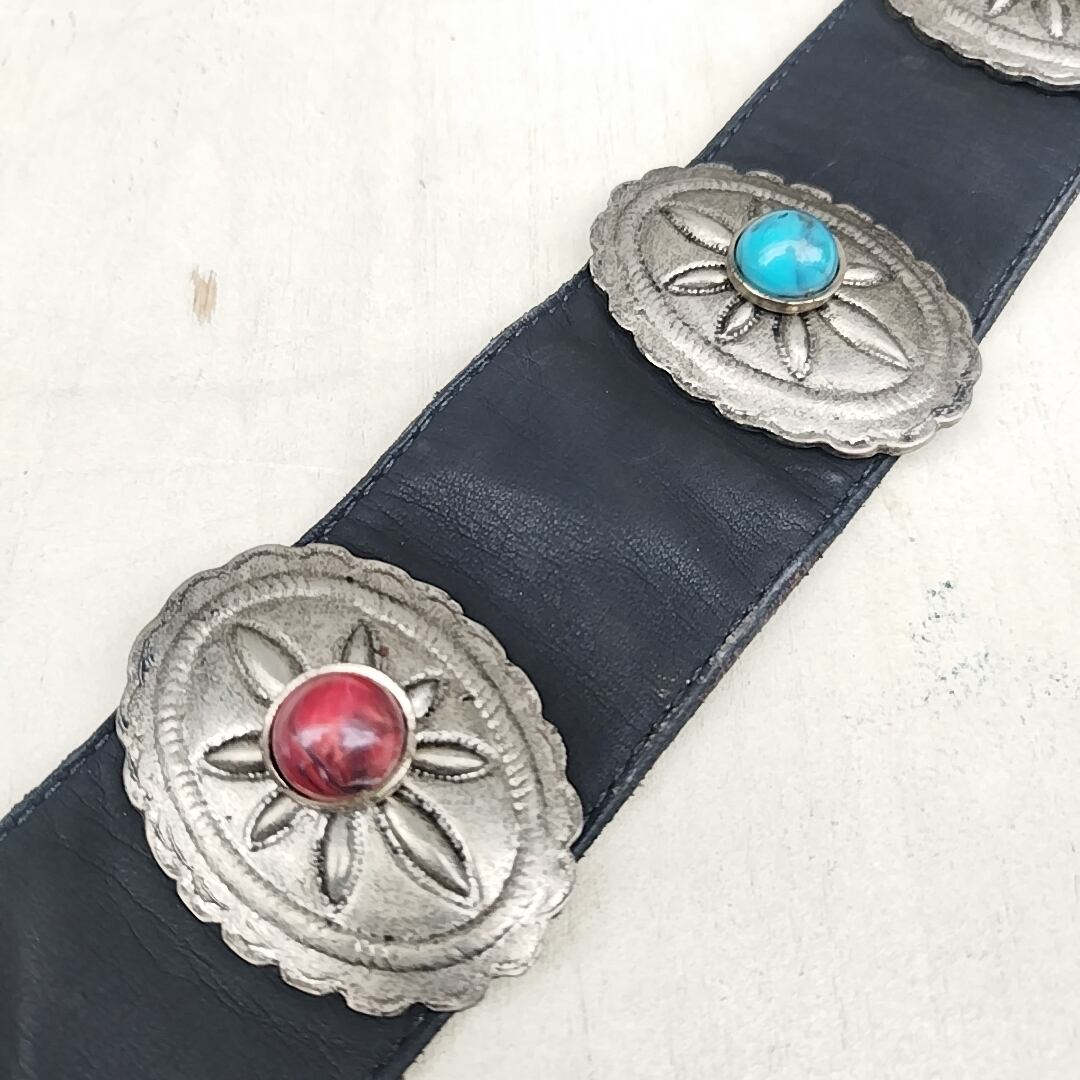 【稀少/80s/USA製】NINA ARJANI/ビンテージ/ヴィンテージ/アメリカ古着/コンチョ/牛革/ウエスタン/レザーベルト/S/黒/T0601MNI3/001/