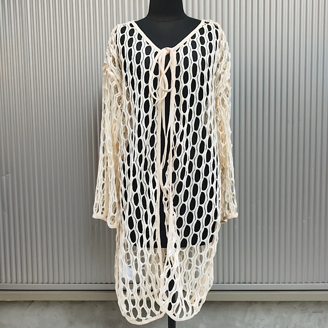 【野村仁美着】美品/サハラsahara/Rippling Wave Mesh Tops/メッシュ/ロング/カーディガン/羽織り/ガウン/アイボリー/ベージュ/定価14300/T0721NF4/0001/ | 古着屋RAINBOWFIELD Since 2006