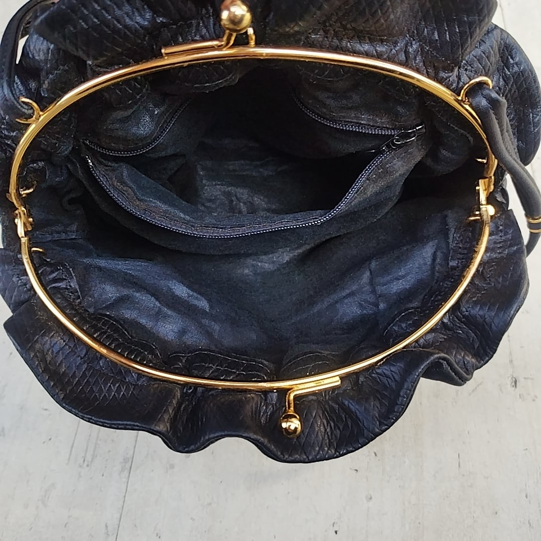 【稀少/〜90s】マリーアスキューMAARI ASKEW NEW YORK/ビンテージ/ヴィンテージ/古着/レザー/がま口/ガマ口/デザイン/ショルダーバッグ/サコッシュ/黒/ネイビー/TC29KB5/003/