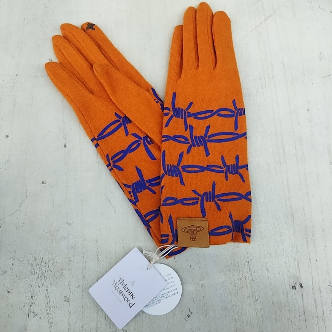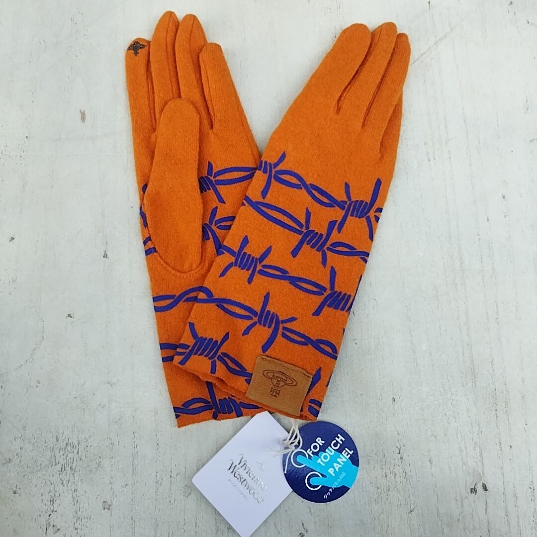 【タッチパネル対応】新品/VW/ヴィヴィアンウエストウッドVivienne Westwood/デッドストック/ウール/オーブ/有刺鉄線柄/手袋/オレンジ/T0627AFS/0002/