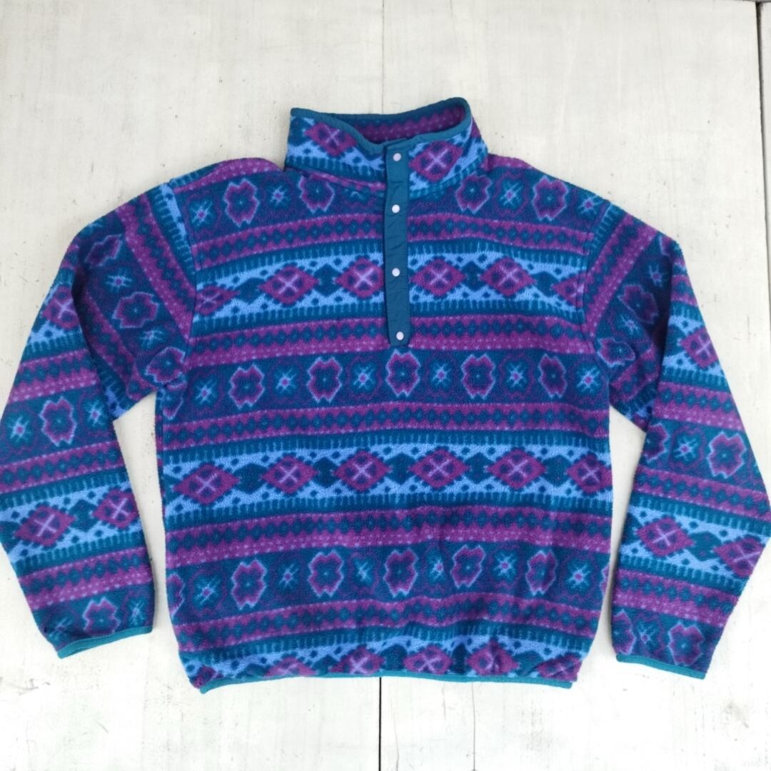 【稀少/USA製/80s】エルエルビーンLL Bean/L.L.Bean/ヴィンテージ/ビンテージ/古着/総柄/スナップT/フリース/プルオーバー/SL08KE5/0001/