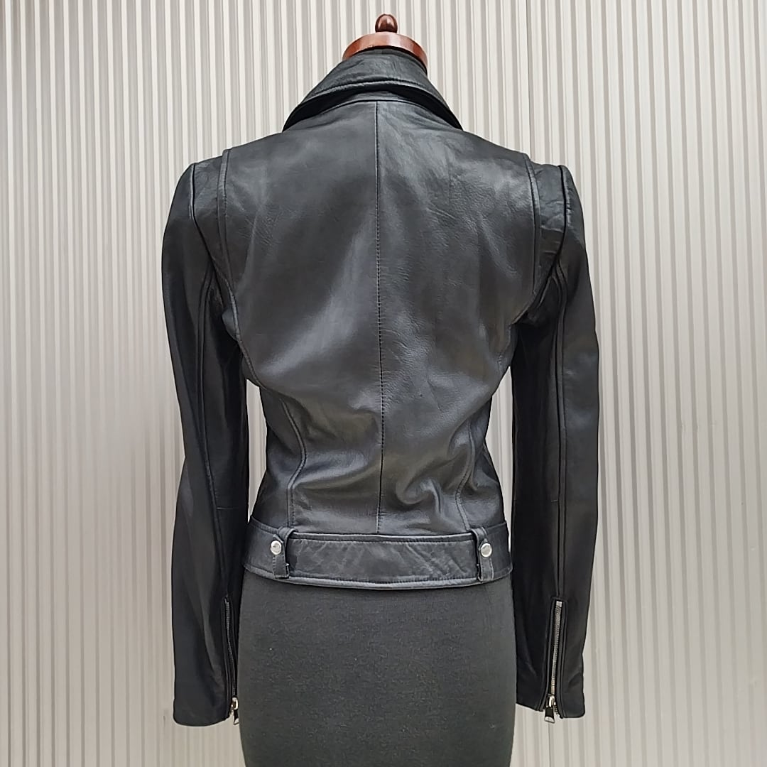 ザラZARA/ラムレザー/羊革/タイト/ダブル/ライダースジャケット/XS/黒/TJ01MKTFR2/0051/