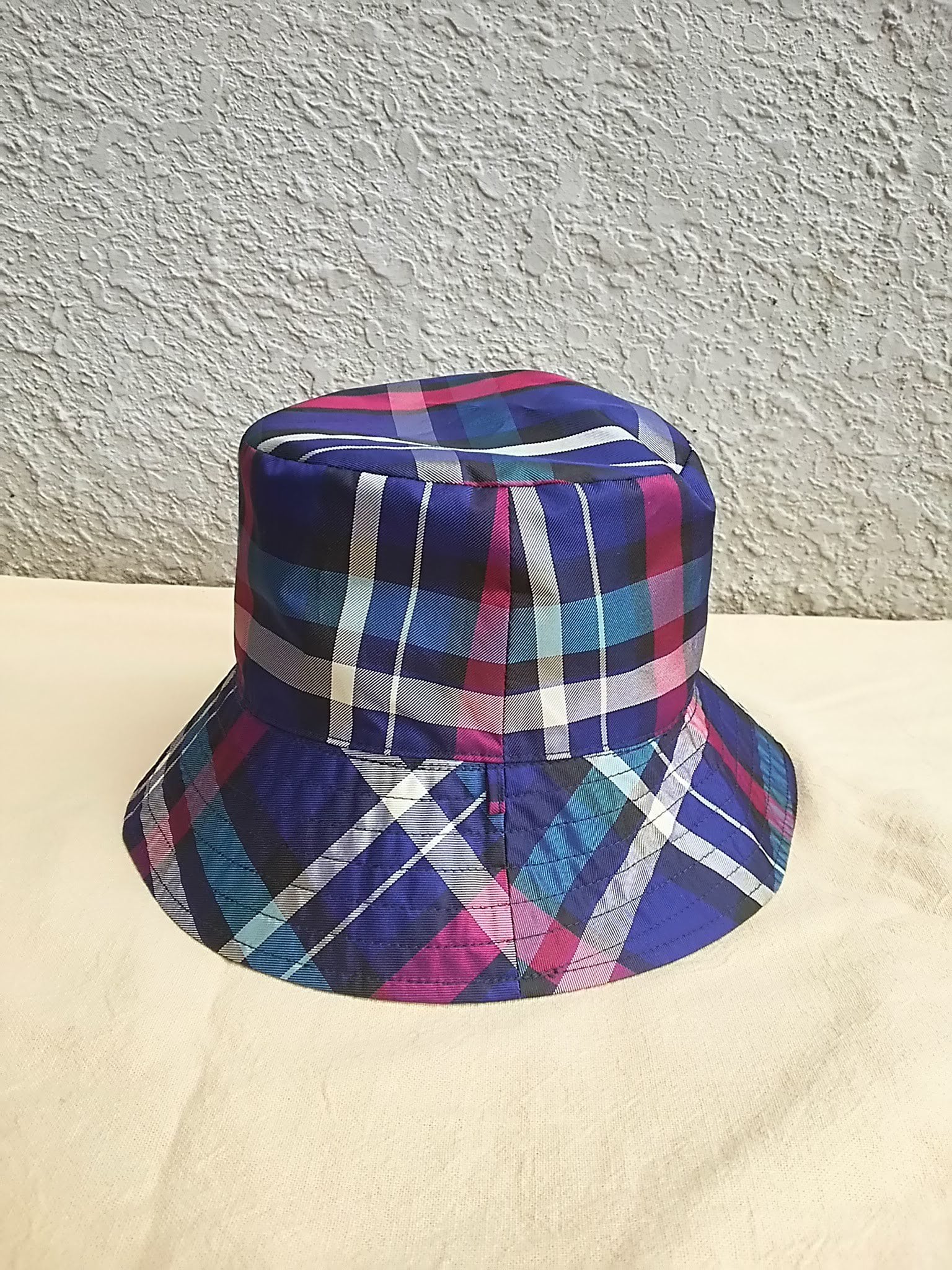 【リバーシブル】美品/ロンシャンLONGCHAMP/チェック柄/バケットハット/ネイビー/KD29MS/