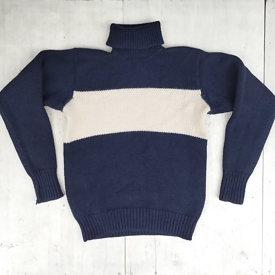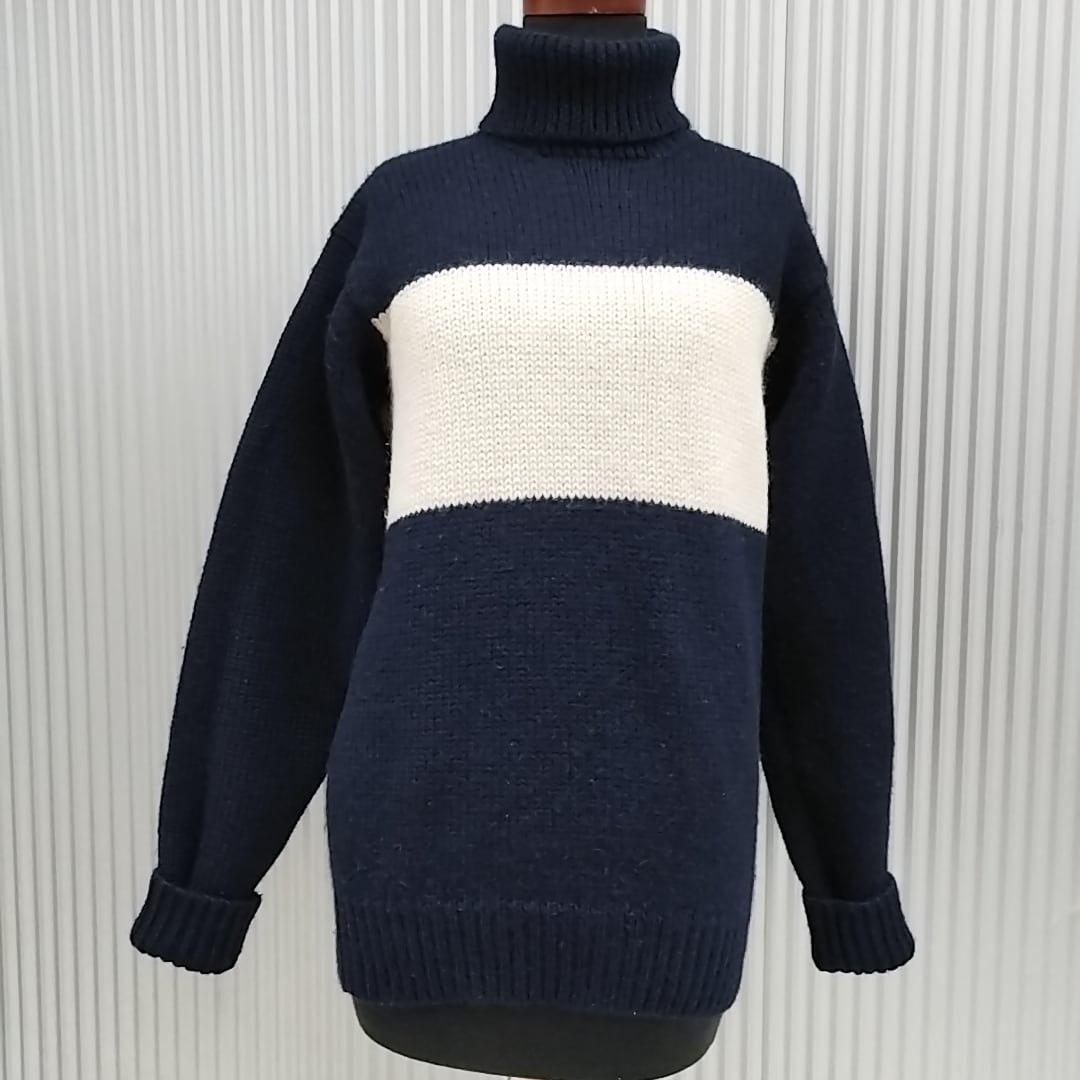 【肉厚/90s】ポロ バイ ラルフローレンPOLO by RALPH LAUREN/ビンテージ/ヴィンテージ/古着/アクティ21/ウール100/バイカラー/タートルネック/ニット/セーター/M/濃紺/ネイビー/ベージュ/ユニセックス/TJ19MB2/002/