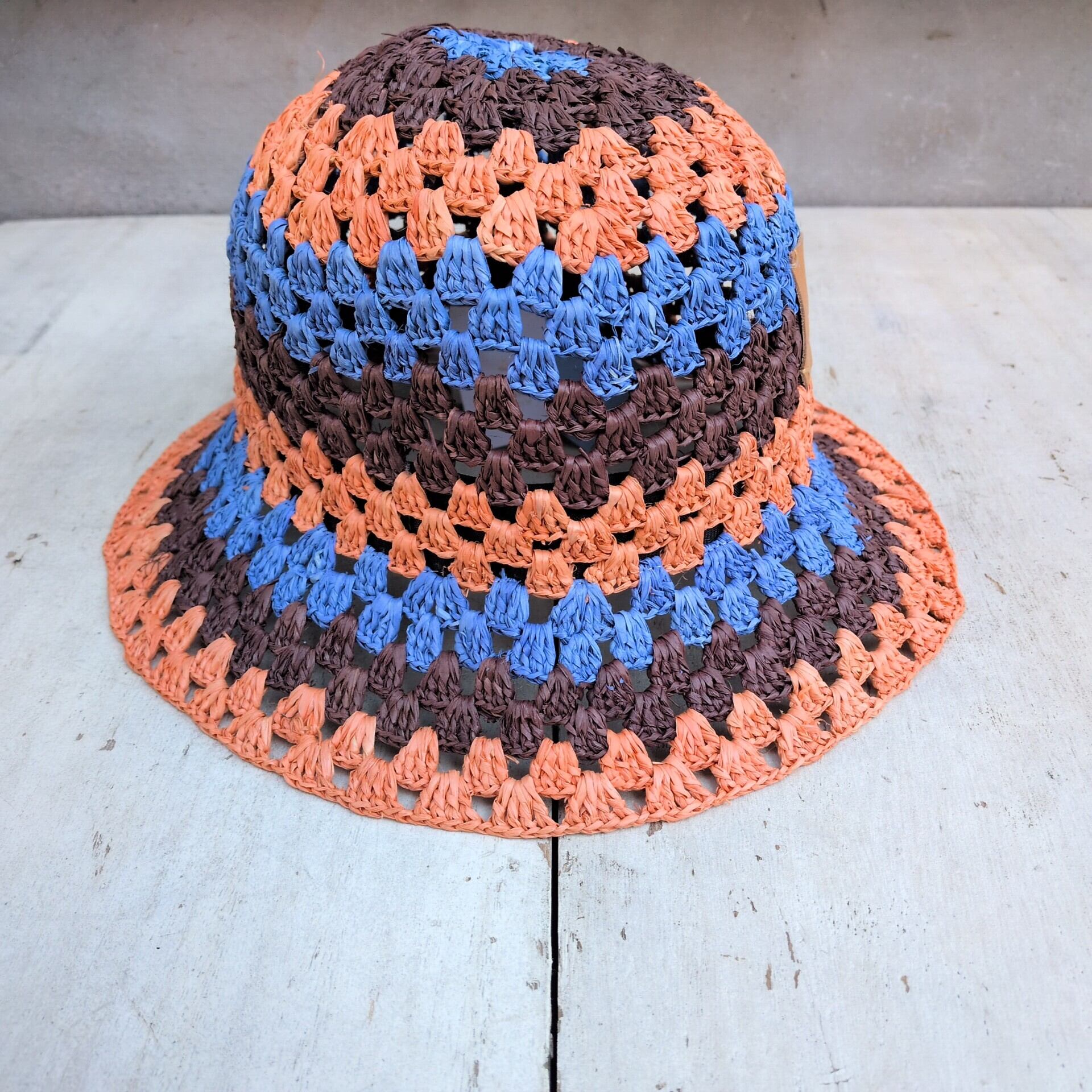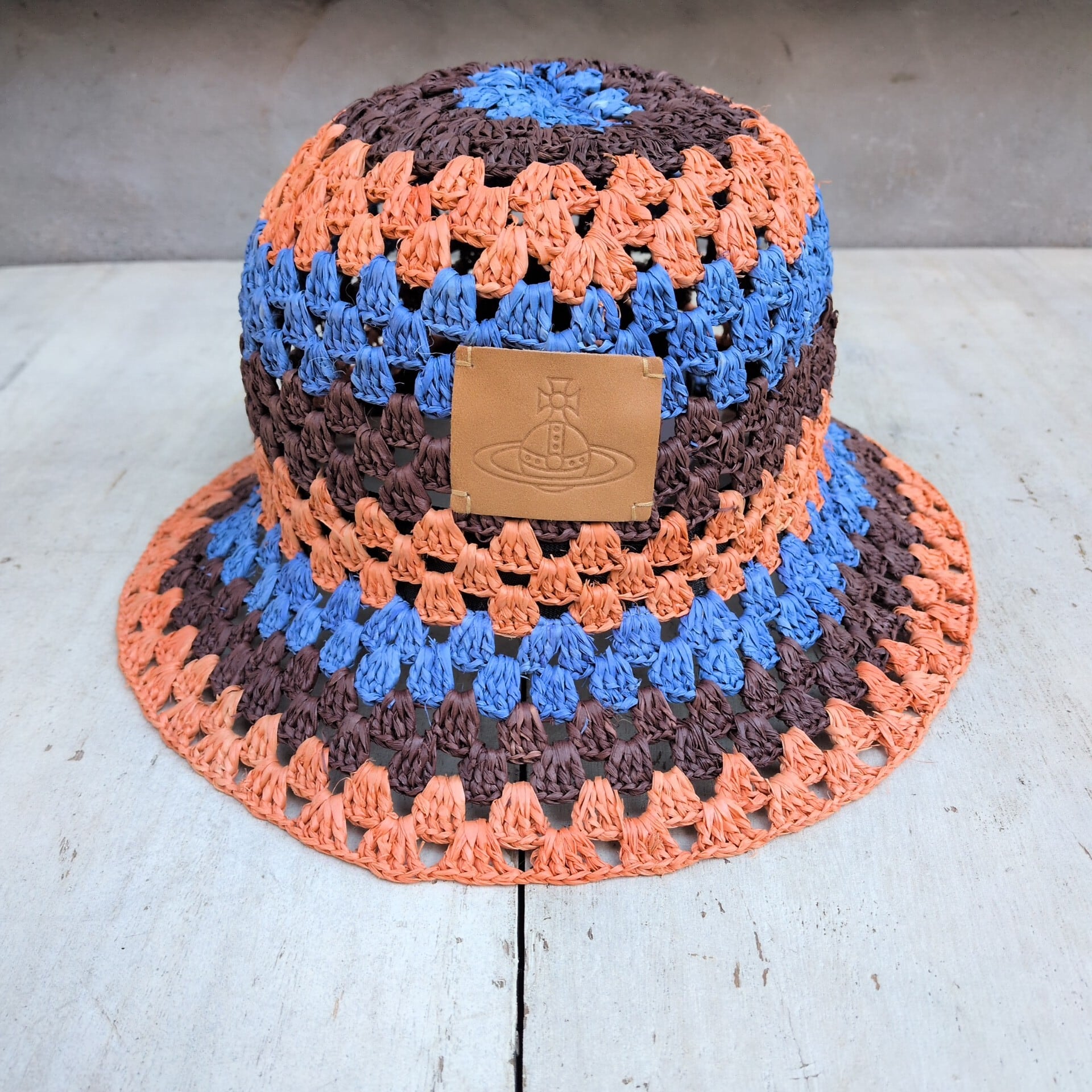 【サイズ調整可】新品/VW/ヴィヴィアンウエストウッドVivienne Westwood/デッドストック/ムーンバット/デザイナーズ/3トーン/ハンドニッティング/クロシェ/クロッシェ/ラフィア/ハット/M-S/マルチカラー/定価14300/T0911MBFS2/0061/ | 古着屋RAINBOWFIELD Since 2006