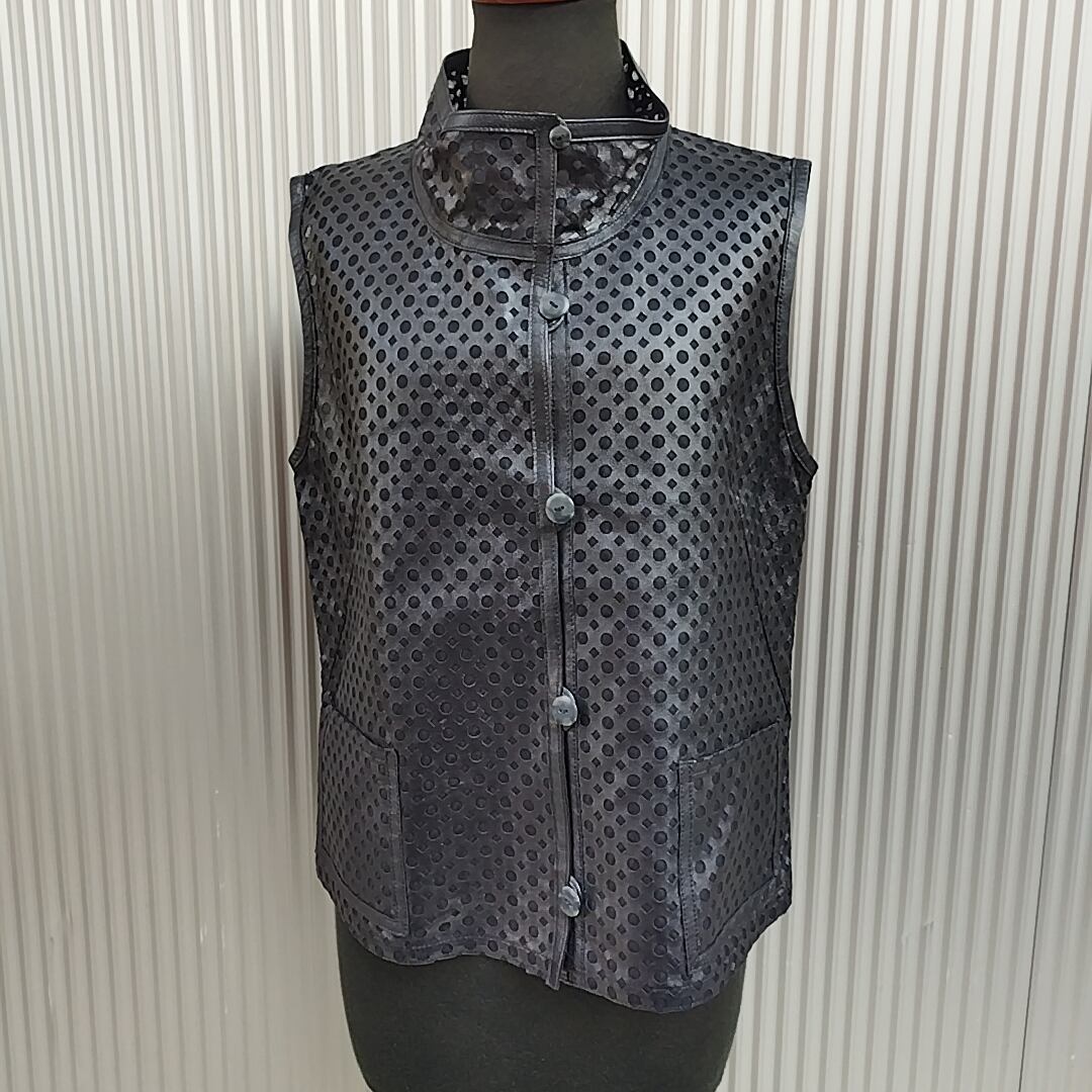 新品同様/ピエリタPIELITA/ムーンバットMOONBAT/国産/古着/オーバーサイズ/ビッグシルエット/羊革/ラムレザー×メッシュ/シアー/ノースリーブ/ベスト/M/黒/TJ05MNI6/001/