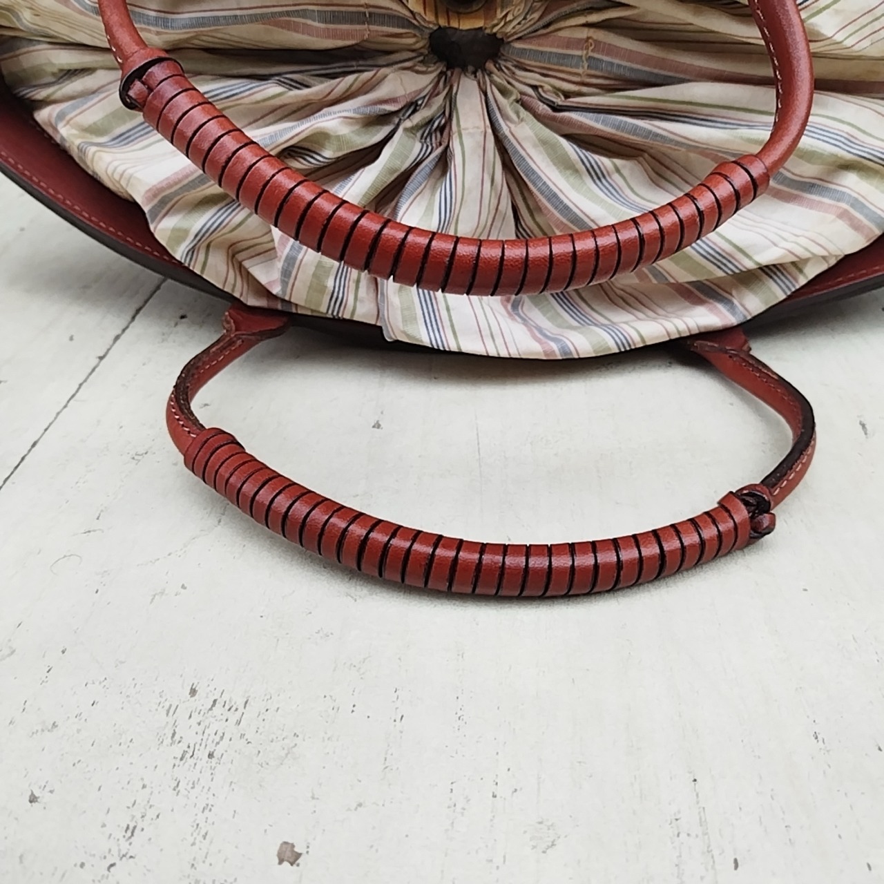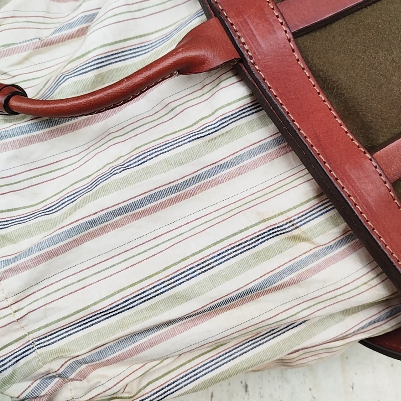 ★古い物なので多少レザーに擦れ、ストライプ部分に汚れなど使用感がございます。