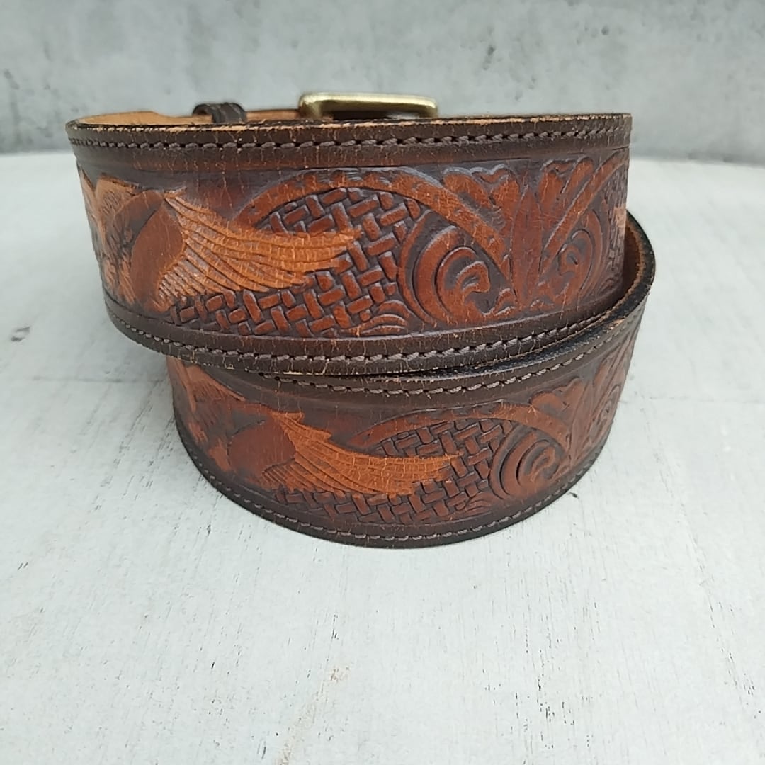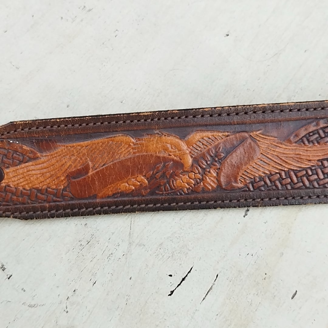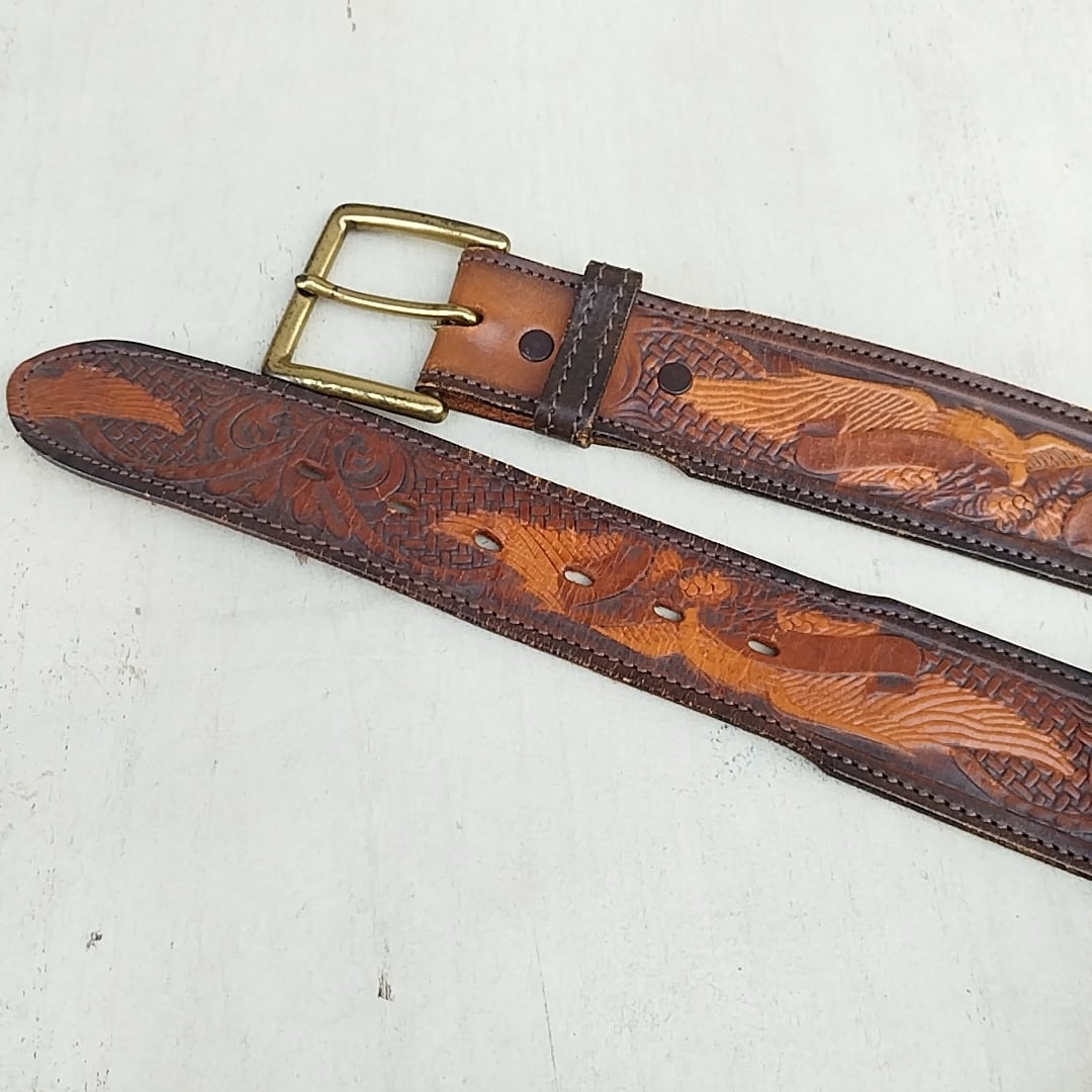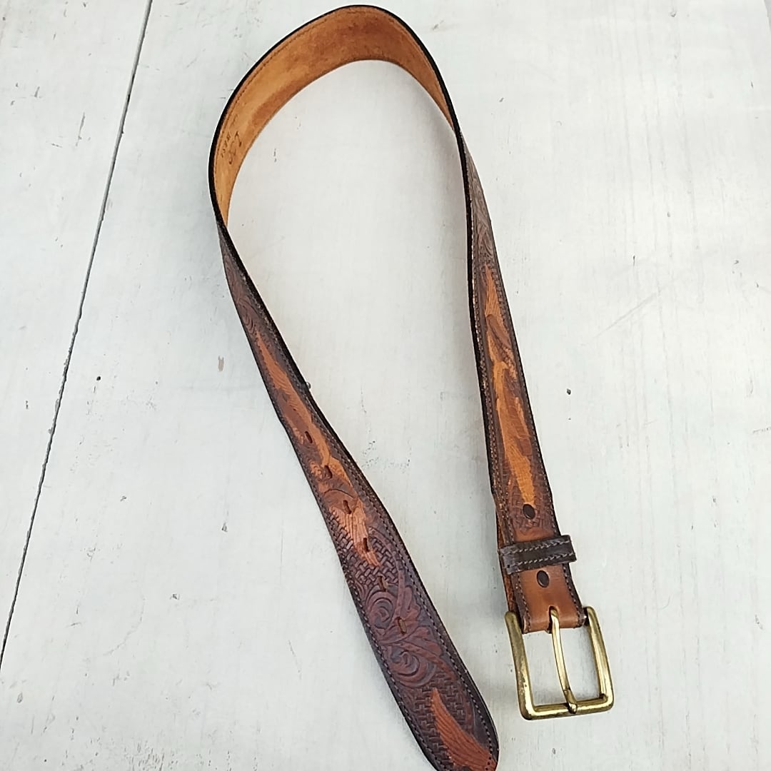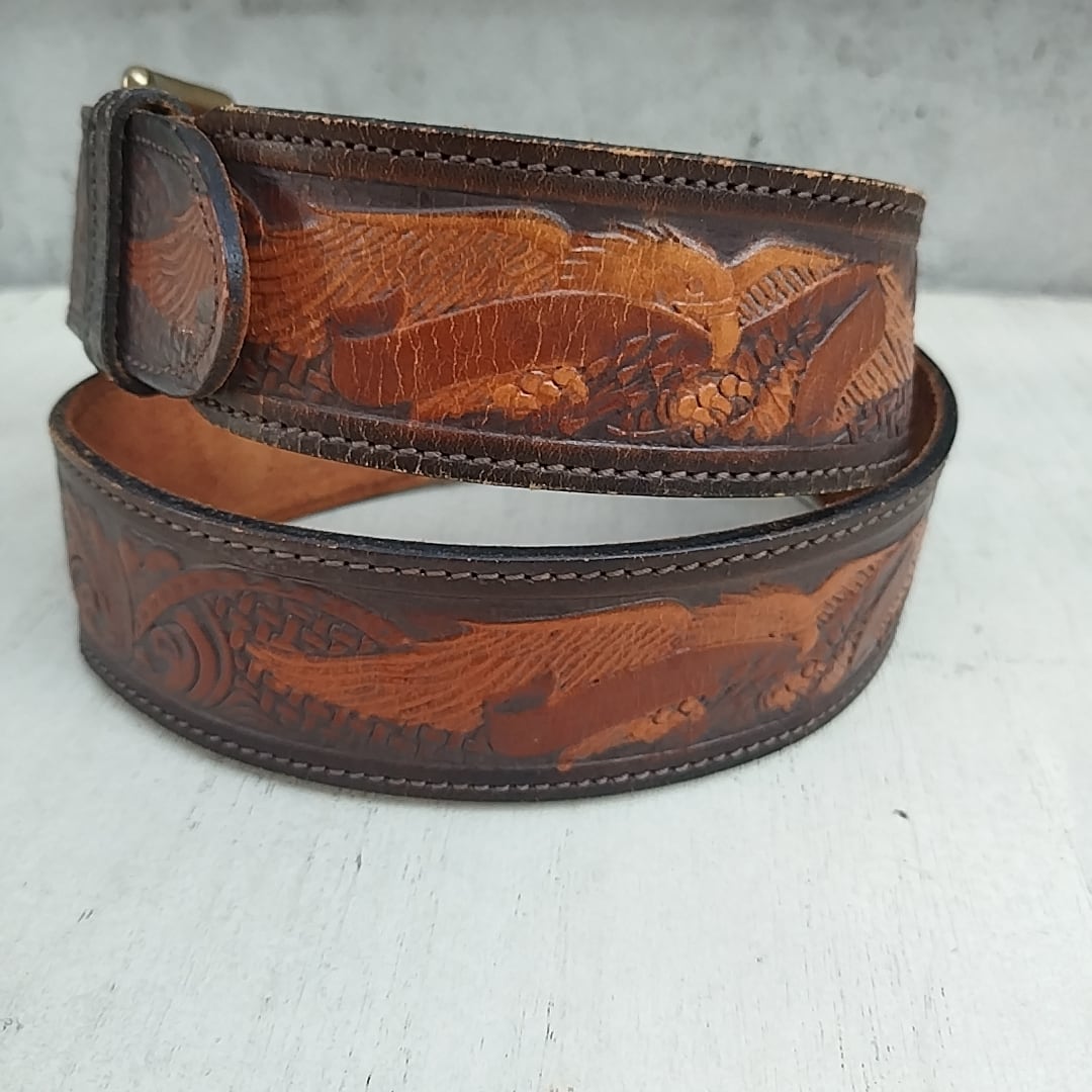 【70s/80s/USA製/Chambers社製】リーLee/ビンテージ/ヴィンテージ/アメリカ古着/牛革/イーグル/カービングレザー/ベルト/32/茶/TK23KK11/003/ | 古着屋RAINBOWFIELD Since 2006
