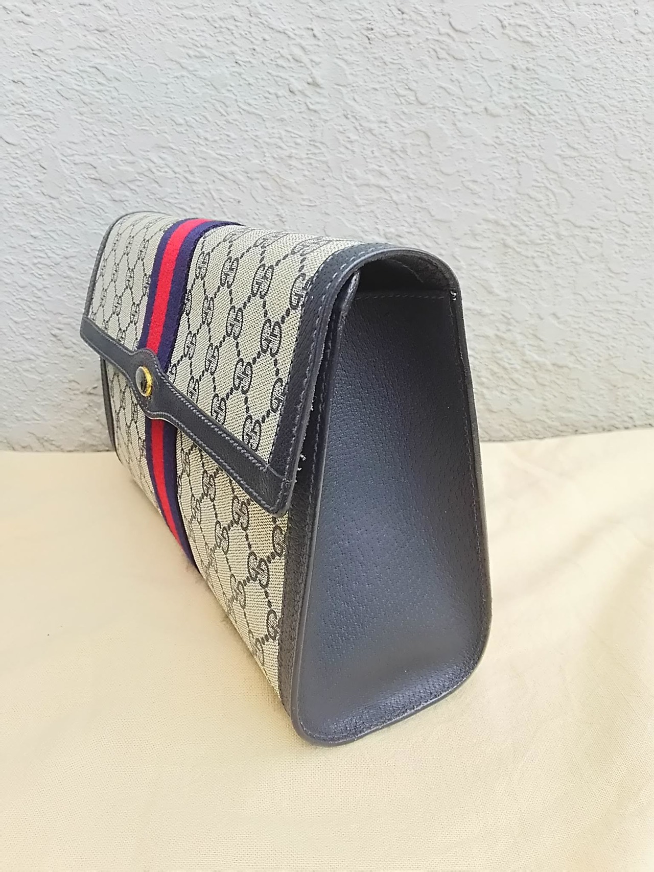 【80s】オールドグッチ/グッチ アクセサリー コレクションGUCCI Accessory Collection/新品/デッドストック/アクセコ/ビンテージ/ヴィンテージ/GG柄/シェリーライン/クラッチバッグ/セカンドバッグ/ネイビー/