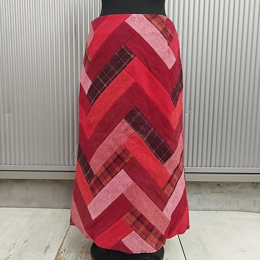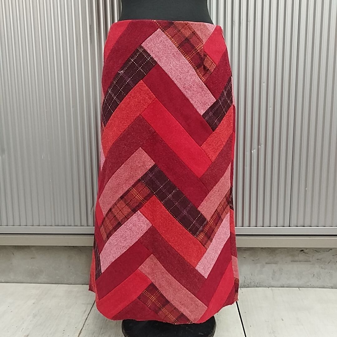 【稀少/00s】美品/ケイタマルヤマKEITA MARUYAMA/デザイナーズアーカイブ/古着/Y2K/ウール/チェック柄/ヘリンボーン/パッチワーク/ロングスカート/1/赤/TK23KK6/003/ | 古着屋RAINBOWFIELD Since 2006