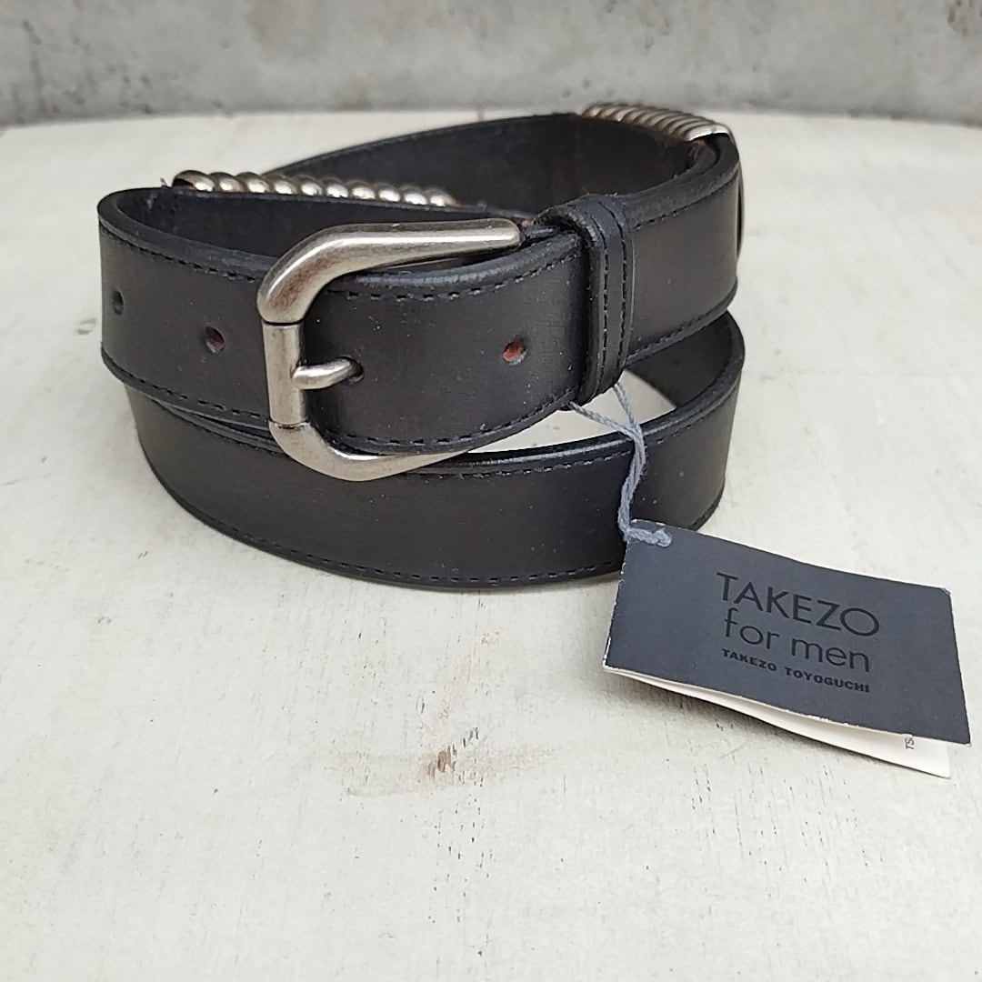 【稀少/80s/90s】新品/タケゾーTAKEZO for men/豊口武三/ヴィンテージ/ビンテージ/デッドストック/デザイナーズ/アーカイブ/牛革/デザイン/レザーベルト/黒/定価15000/TK25UAK1/057/ | 古着屋RAINBOWFIELD Since 2006