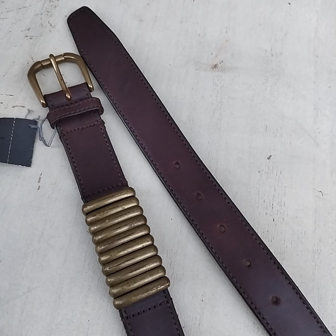 【稀少/80s/90s】新品/タケゾーTAKEZO for men/豊口武三/ヴィンテージ/ビンテージ/デッドストック/デザイナーズ/アーカイブ/牛革 × 真鍮/デザイン/レザーベルト/茶/定価15000/TK25UAK1/057/ | 古着屋RAINBOWFIELD Since 2006
