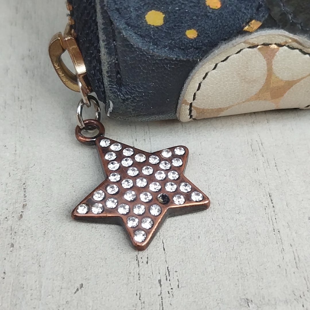 ★パッチワークのひとつが、ウインクしたネコに。星型のビジューもポイントになり、華やかでキラキラな、とびきり可愛らしいデザインです。