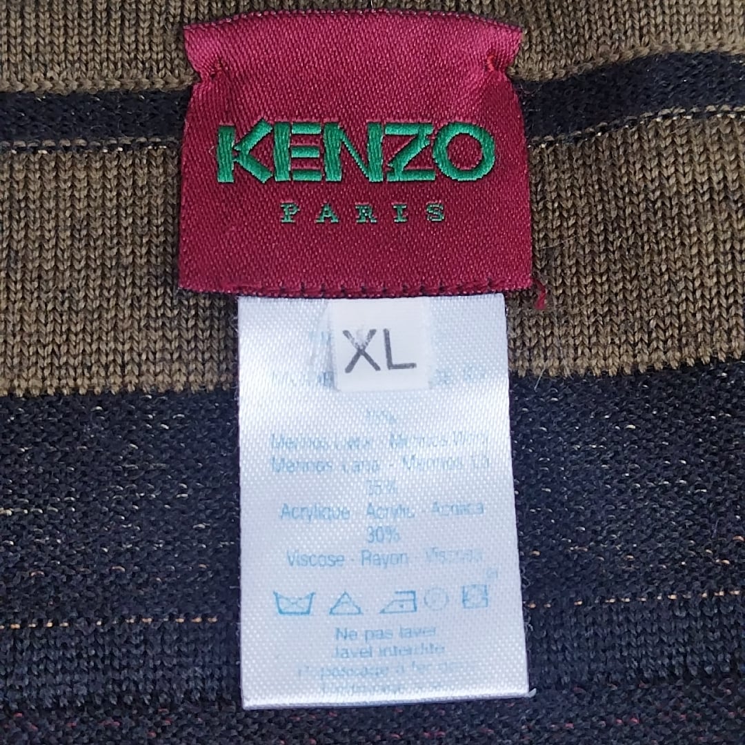 【稀少/80s/90s/イタリア製】美品/ケンゾー パリKENZO PARIS/高田賢三/ヴィンテージ/ビンテージ/古着/デザイナーズ/アーカイブ/ベネカ期/総柄/ボーダー/ストライプ/デザインニット/XL/マルチカラー/TL07KE6/004/ | 古着屋RAINBOWFIELD Since 2006