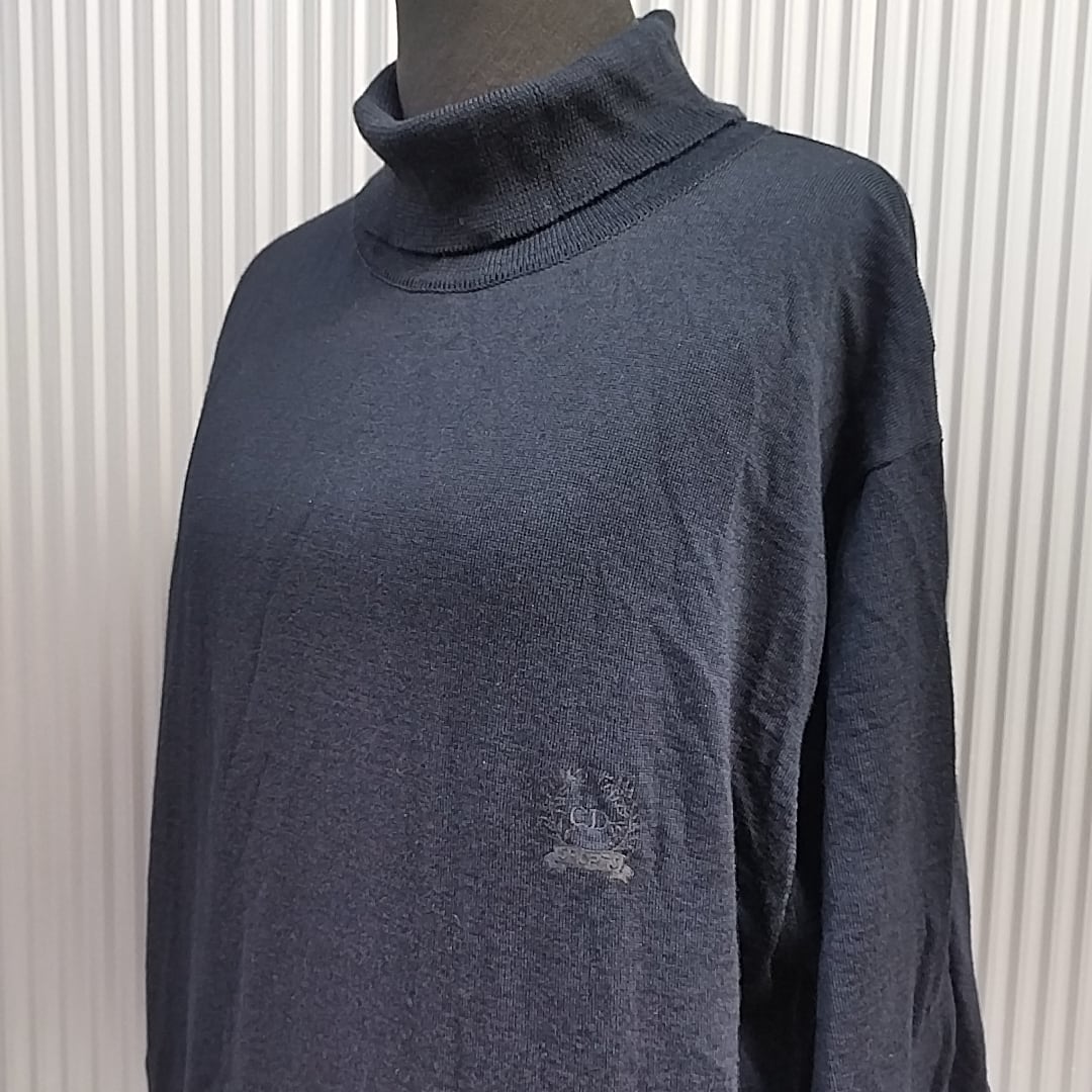 【稀少/80s/90s】美品/CD/クリスチャンディオール スポーツChristian Dior SPORTS/ビンテージ/ヴィンテージ/古着/ワンポイント/刺繍ロゴ/ウール/タートルネック/長袖/ニット/セーター/L/黒系/TL06YR8/0001/ | 古着屋RAINBOWFIELD Since 2006