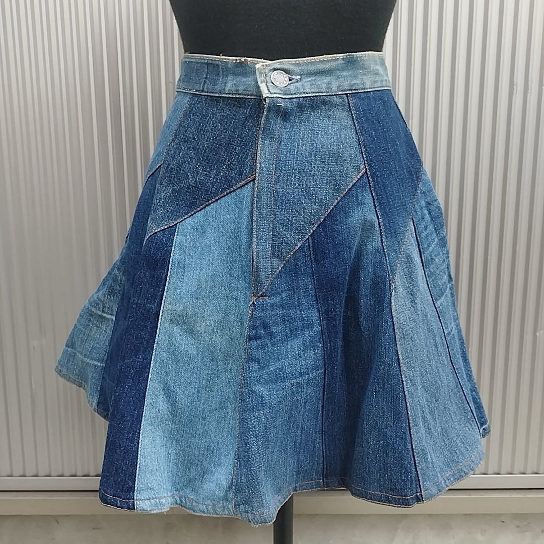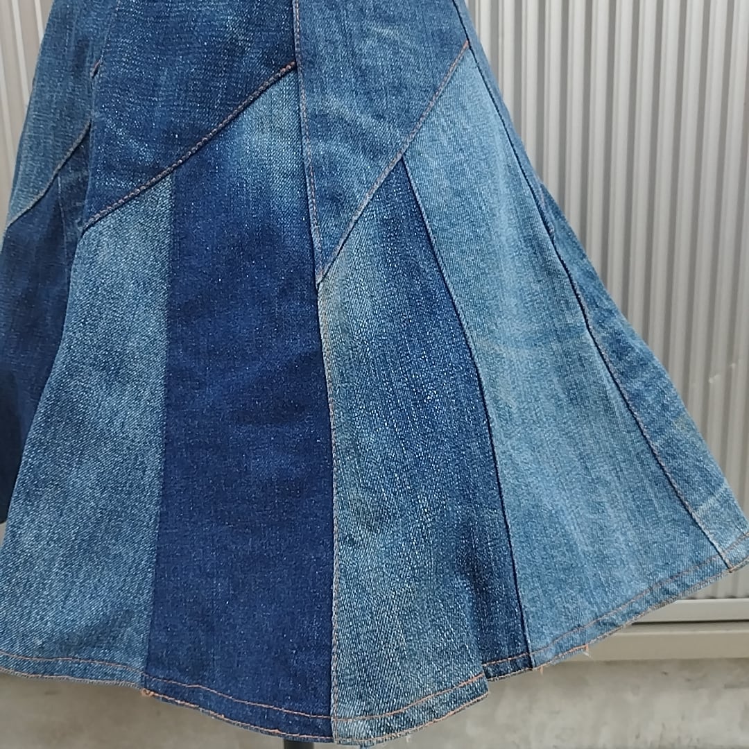 【唯一無二】Unknown/ヴィンテージ/ビンテージ/古着/パッチワーク/リメイク/デニム/フレアスカート/インディゴ/SC10KE10/001/ | 古着屋RAINBOWFIELD Since 2006