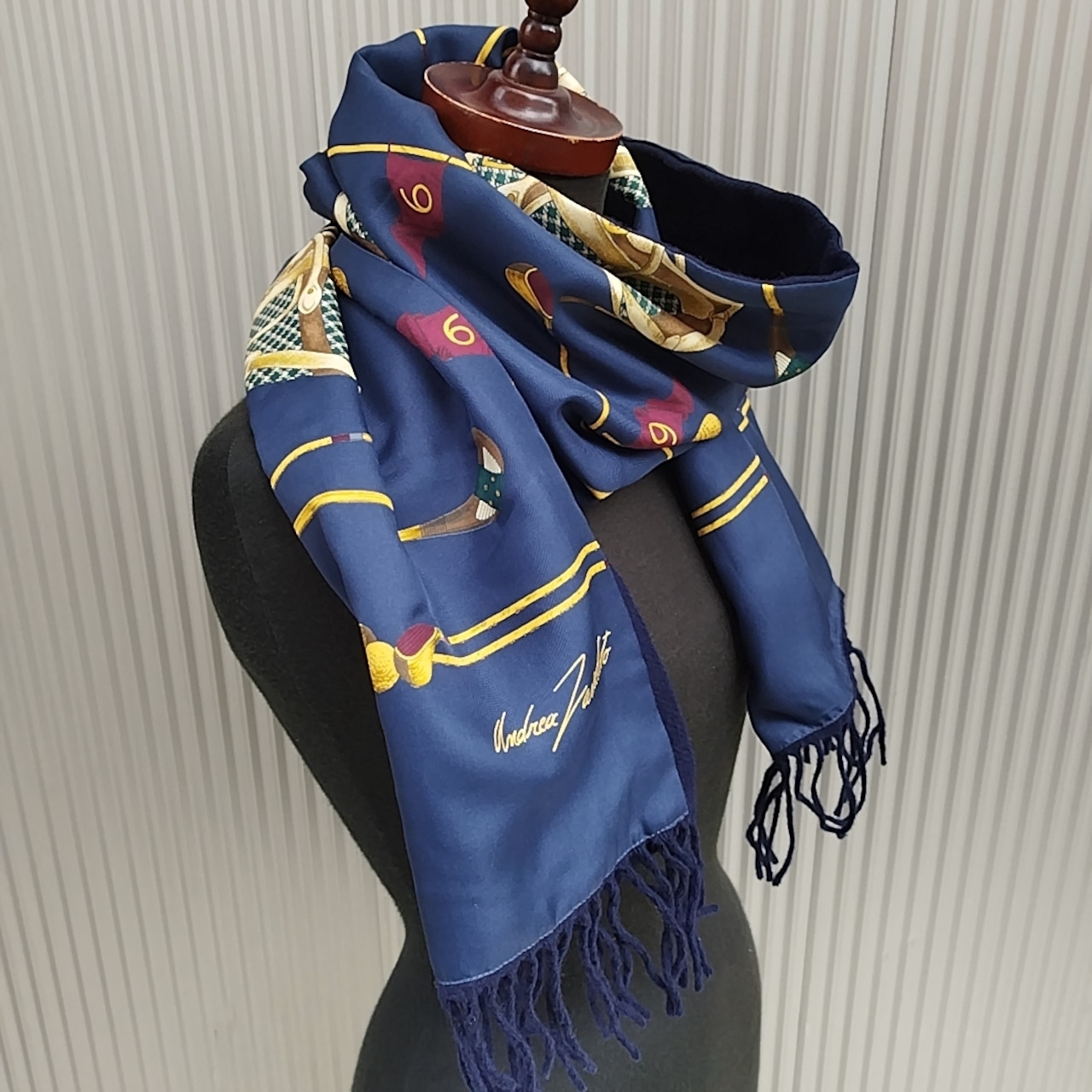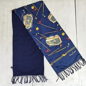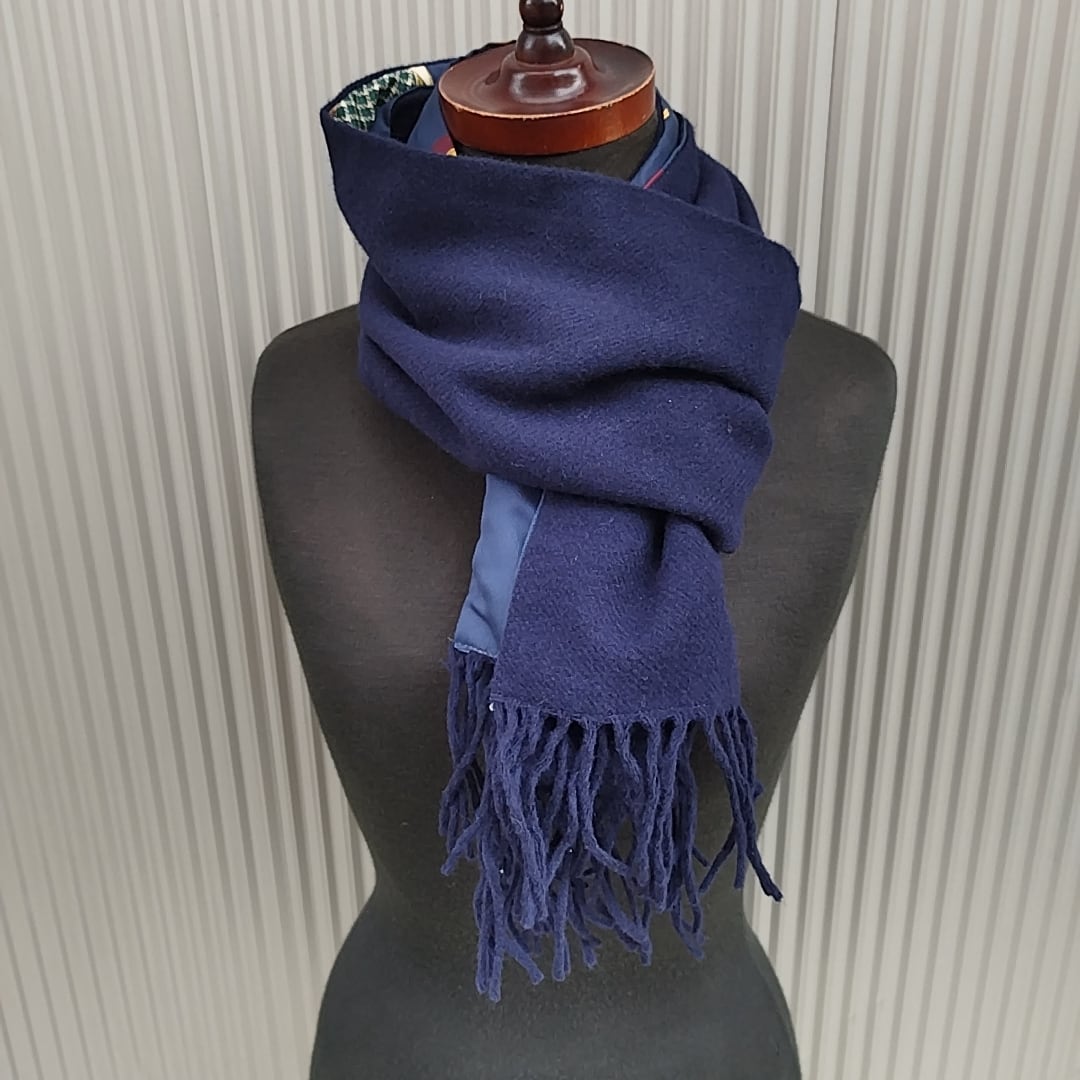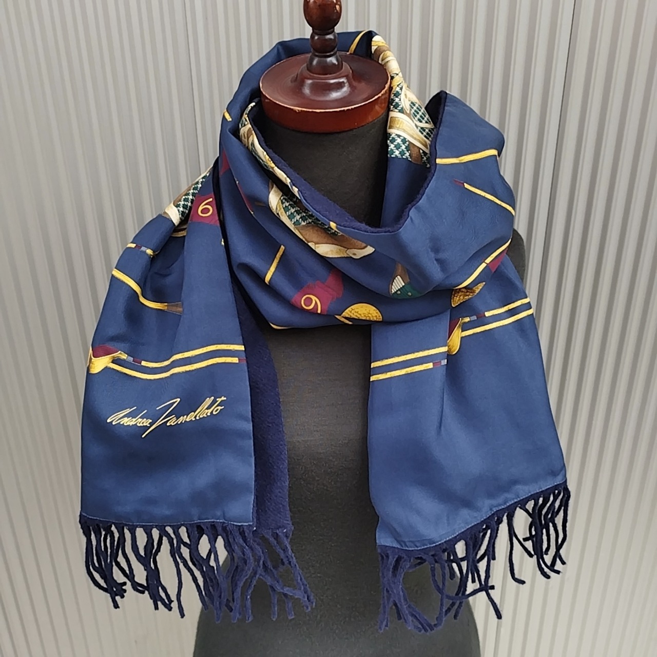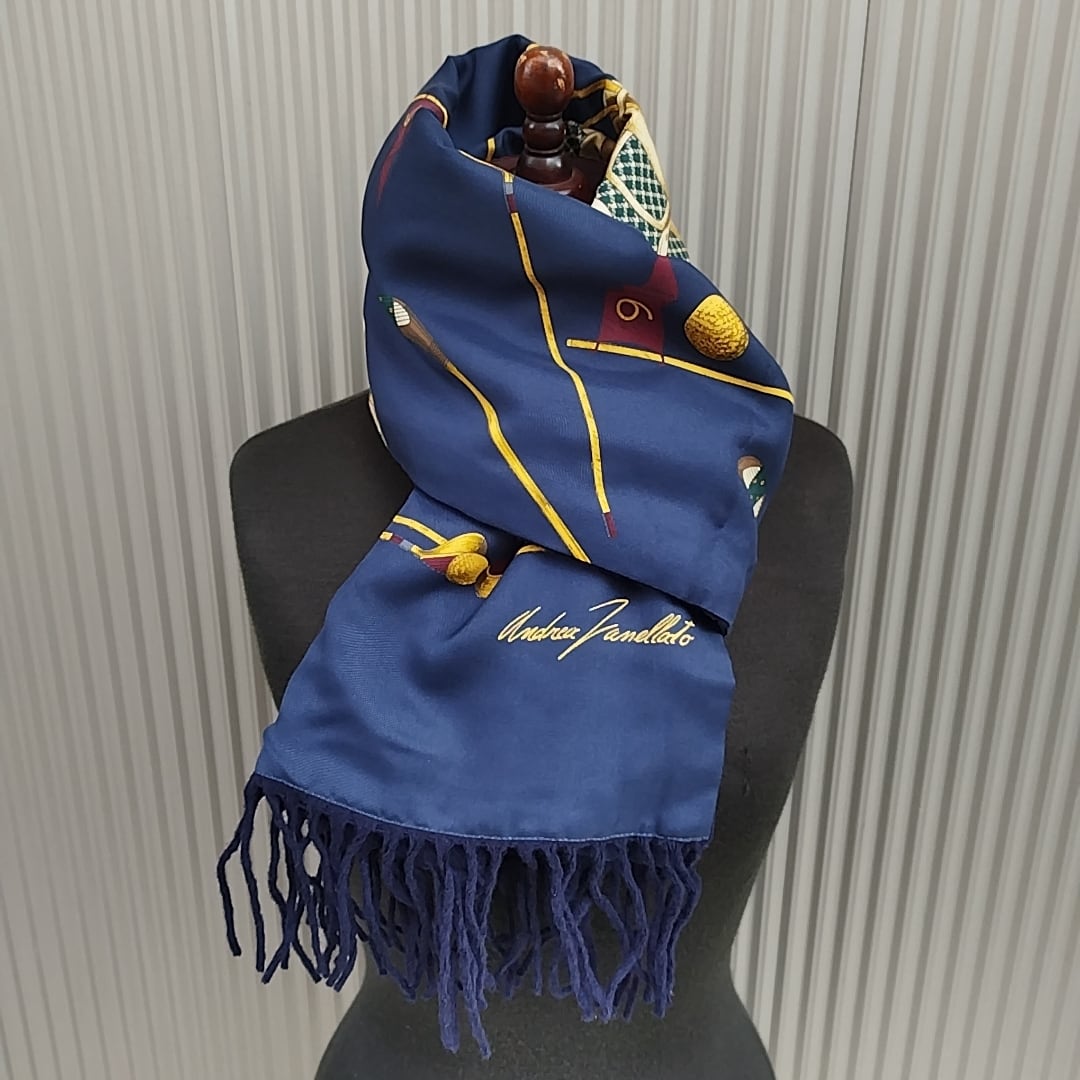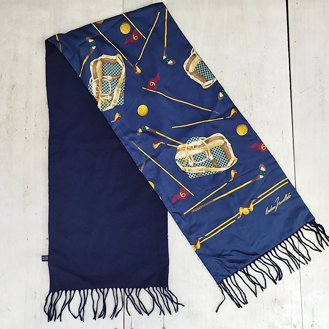 【イタリア製/リバーシブル】美品/Unknown/リメイク/ウール100 × シルク100/スカーフ/ゴルフ柄/フリンジ/マフラー/ネイビー/TL06YR20/005/ | 古着屋RAINBOWFIELD Since 2006