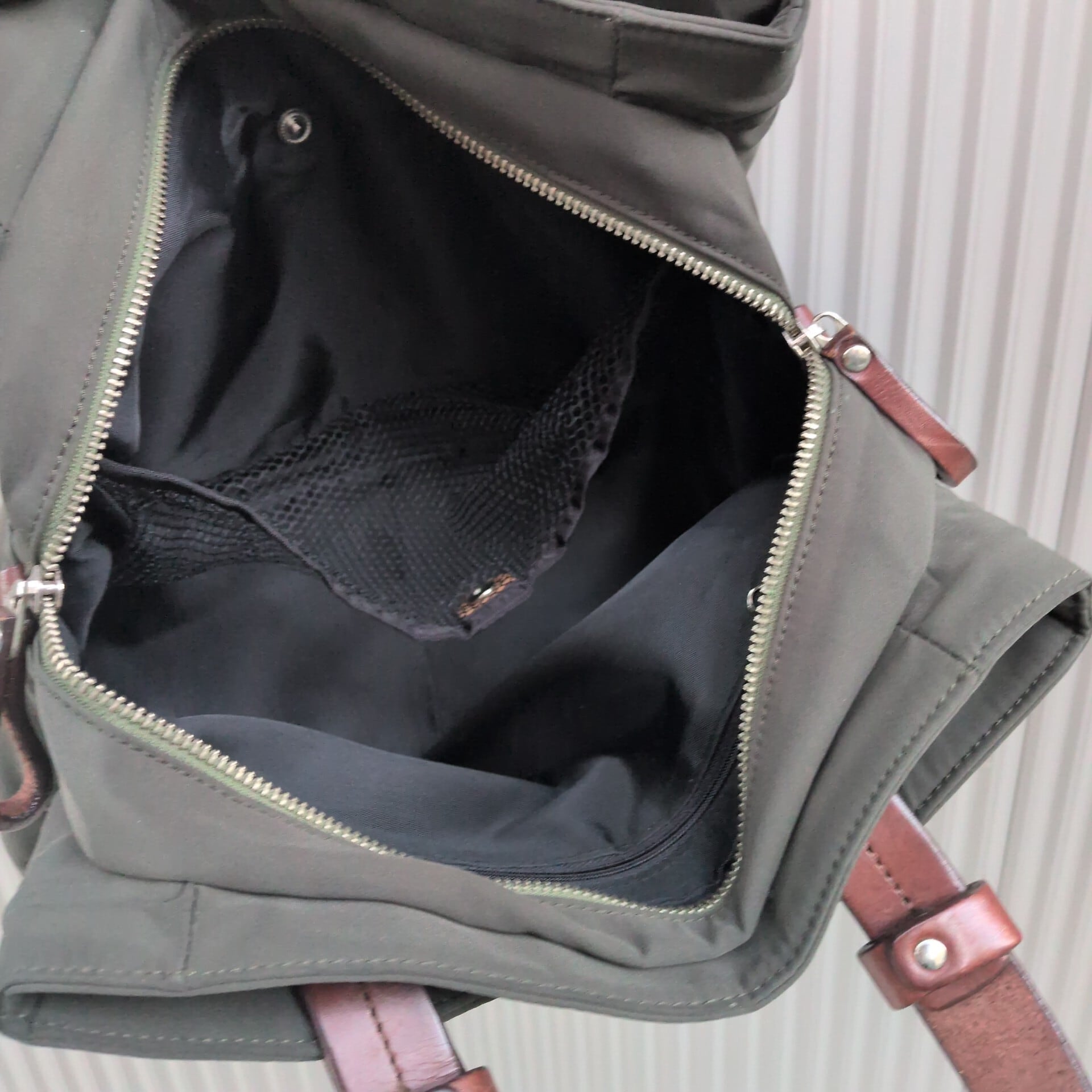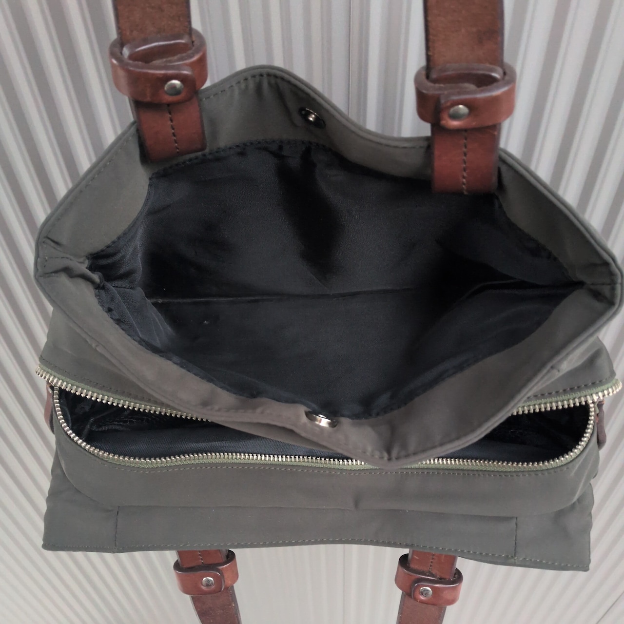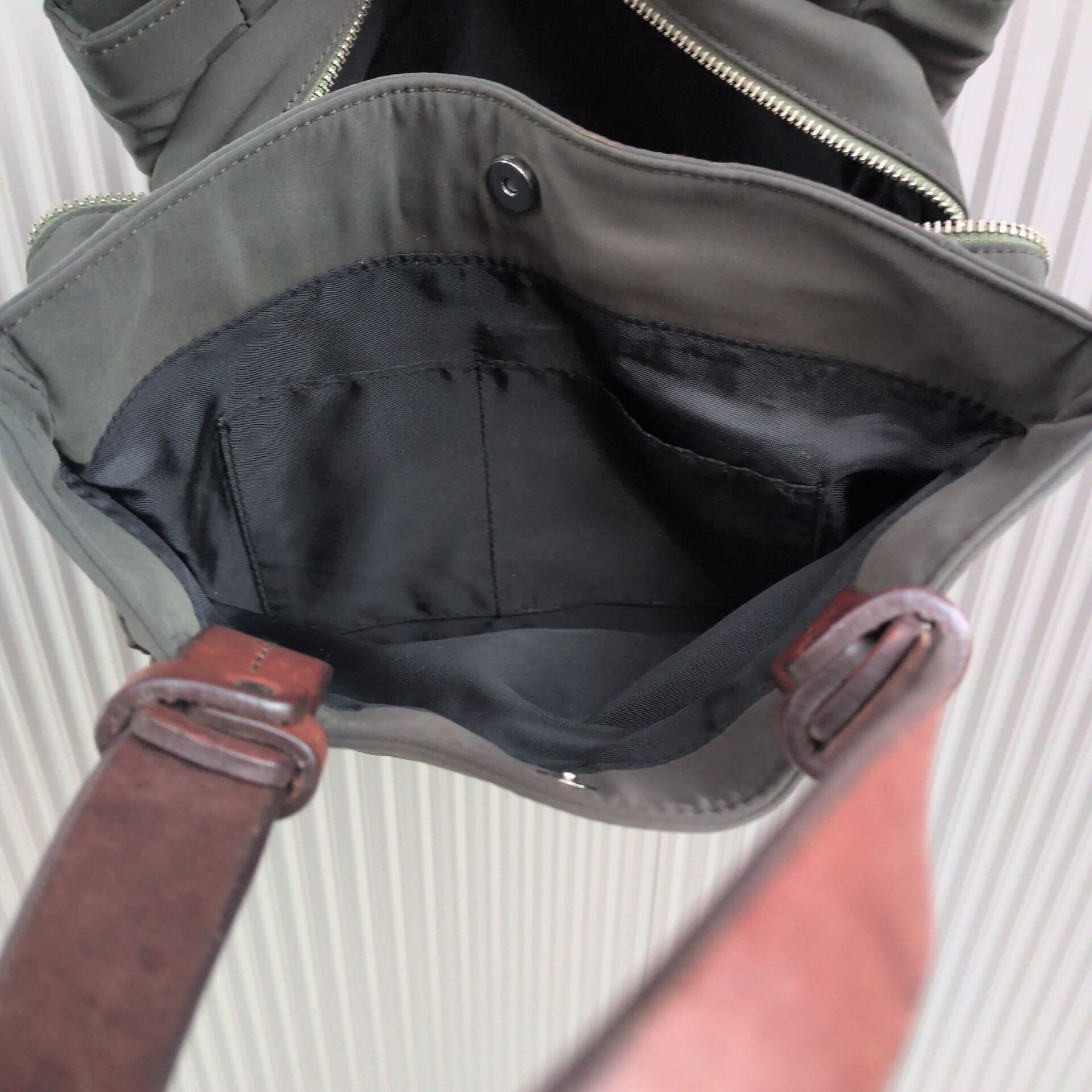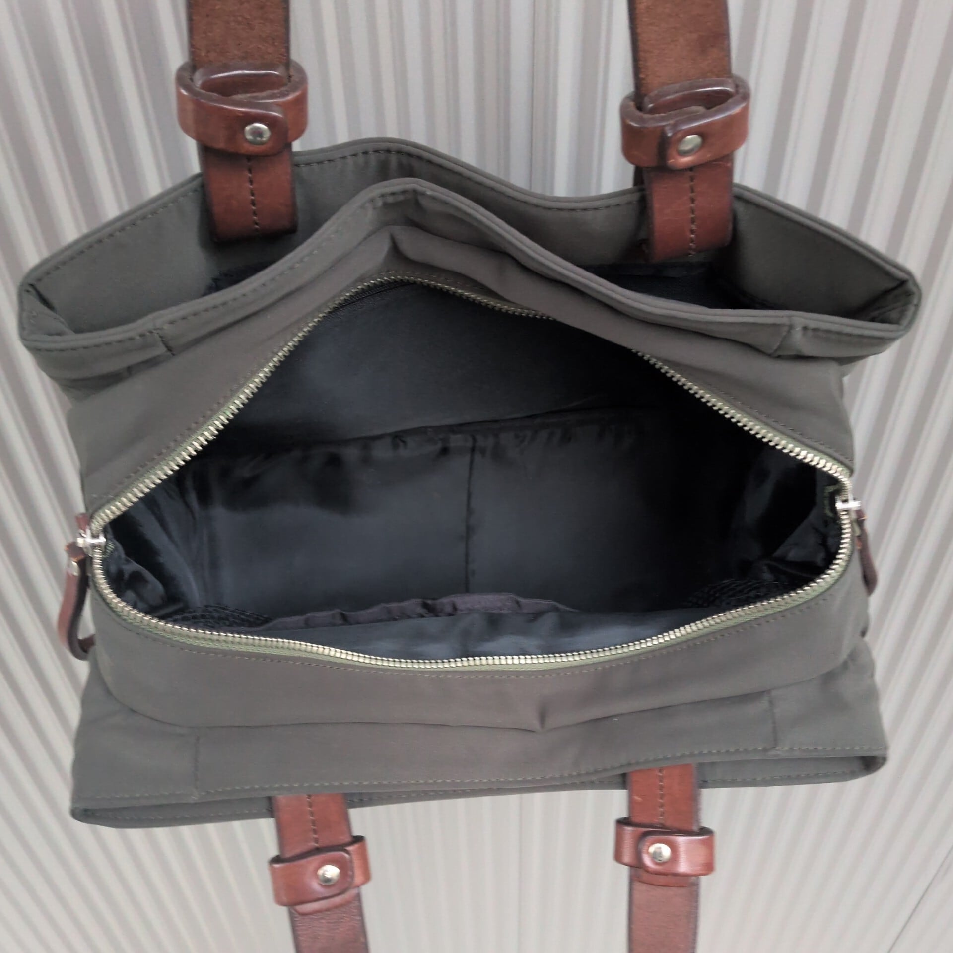 【稀少】カンサイkansai/カンサイヤマモト/山本寛斎/古着/レトロ/ナイロン/レザーハンドル/ハンドバッグ/カーキ/TL06YR18/005/ | 古着屋RAINBOWFIELD Since 2006