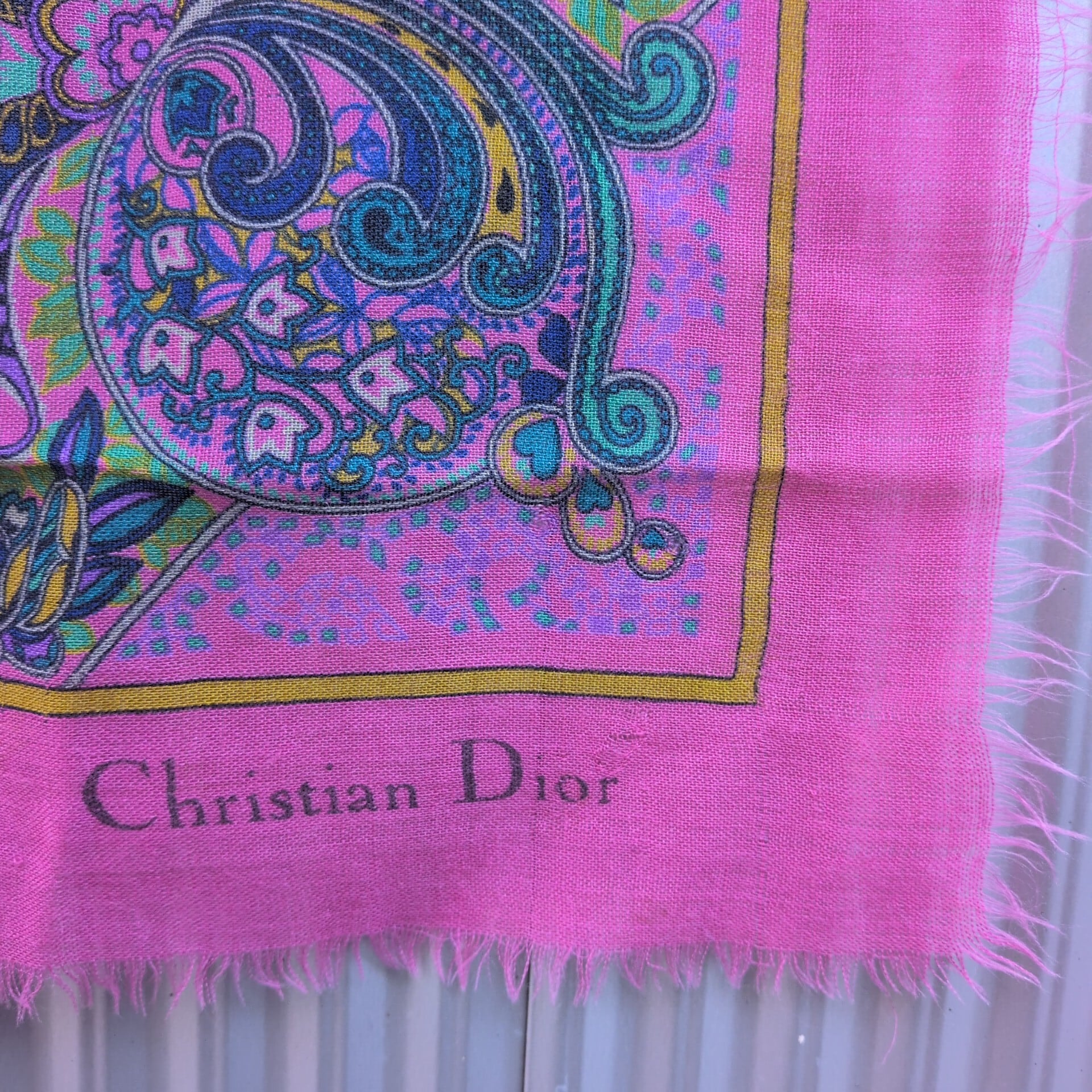 美品/CD/クリスチャンディオールChristian Dior/ビンテージ/ヴィンテージ/レトロ古着/大判/ウール/ペイズリー柄/ショール/ストール/ピンク/TK17UAK10/003/ | 古着屋RAINBOWFIELD Since 2006