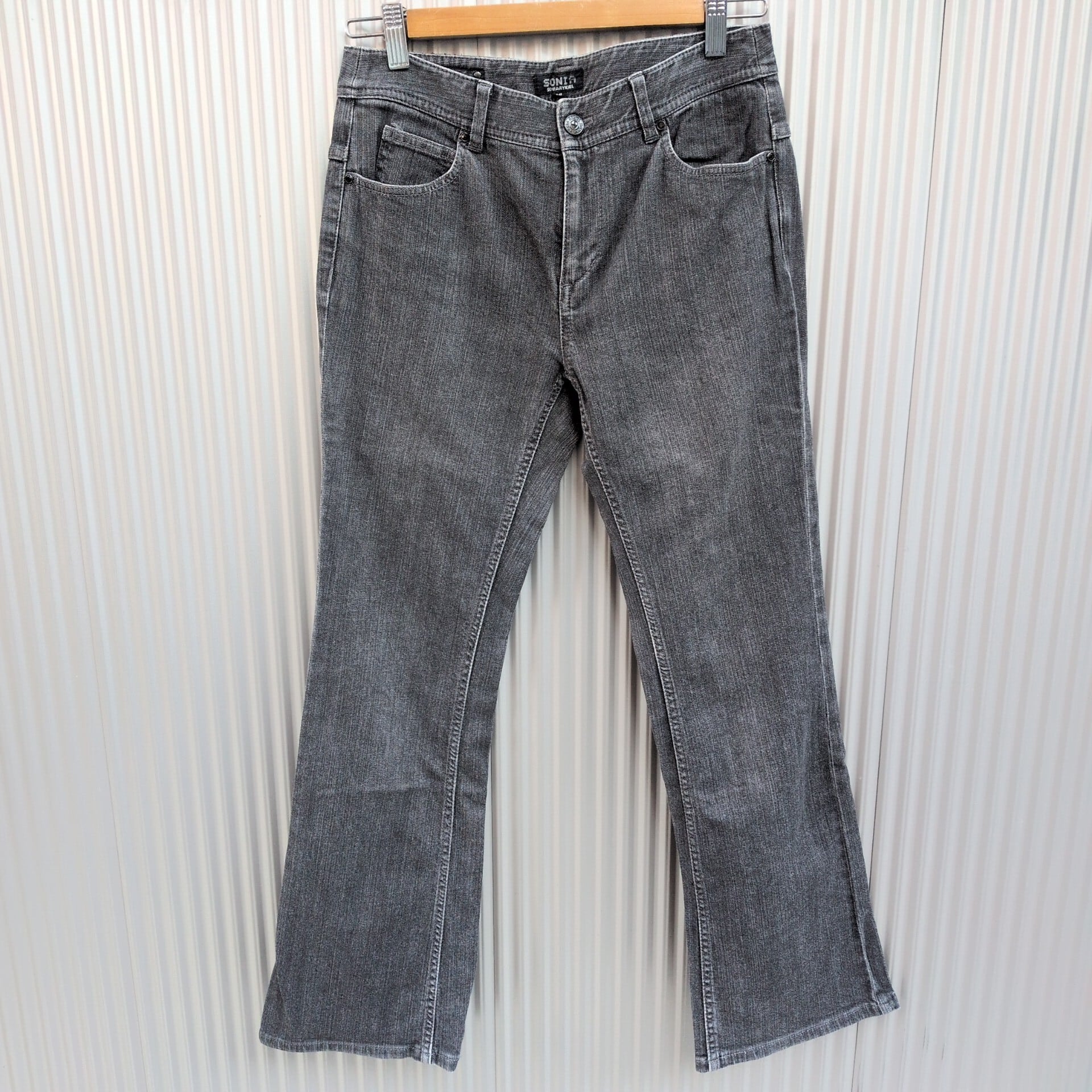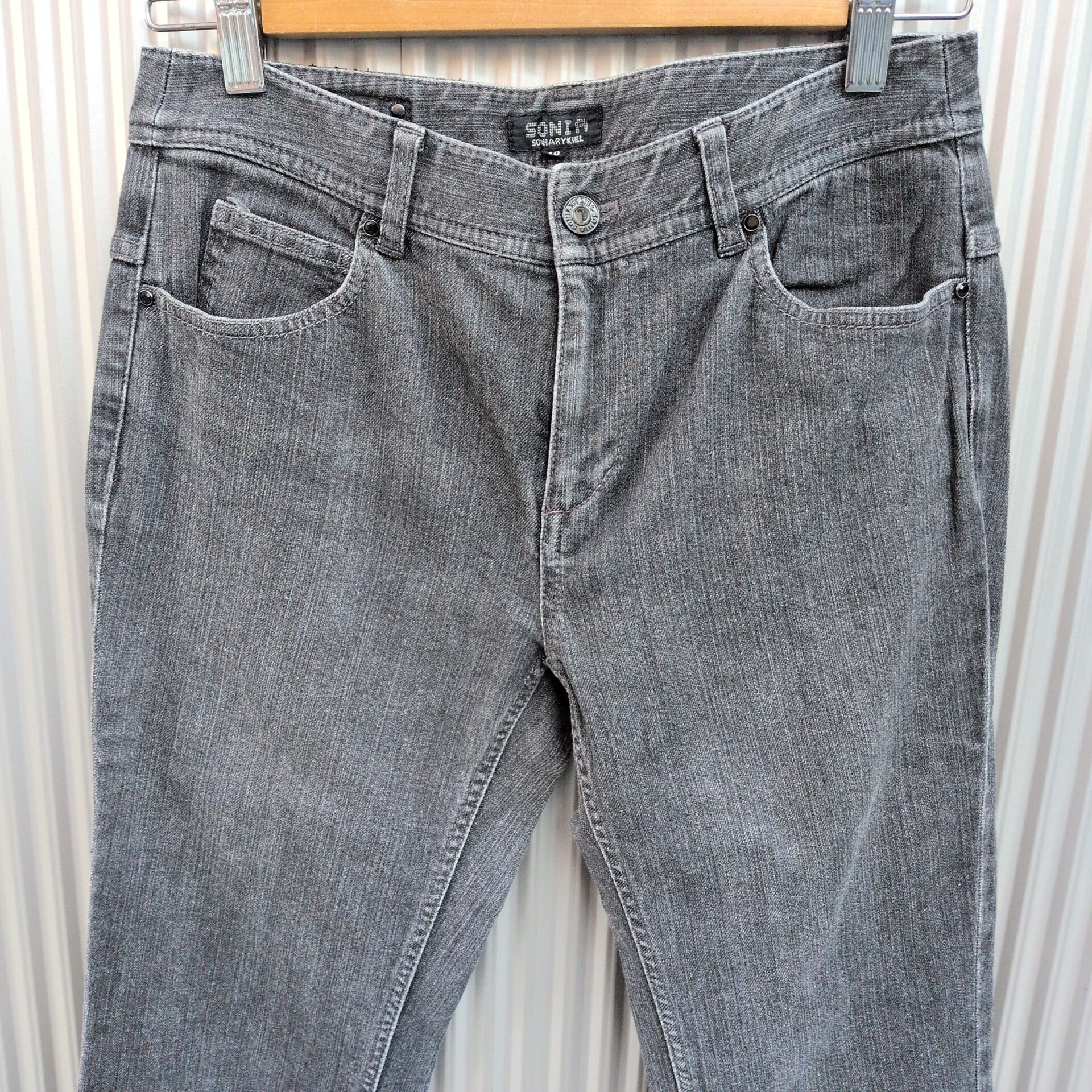 【00s】美品/ソニアリキエルSONIA RYKIEL/古着/y2k/オンワード樫山/革パッチ/フレア/ブーツカット/ストレッチ/ブラックジーンズ/デニムパンツ/40/黒/TL06YR3/001/ | 古着屋RAINBOWFIELD Since 2006