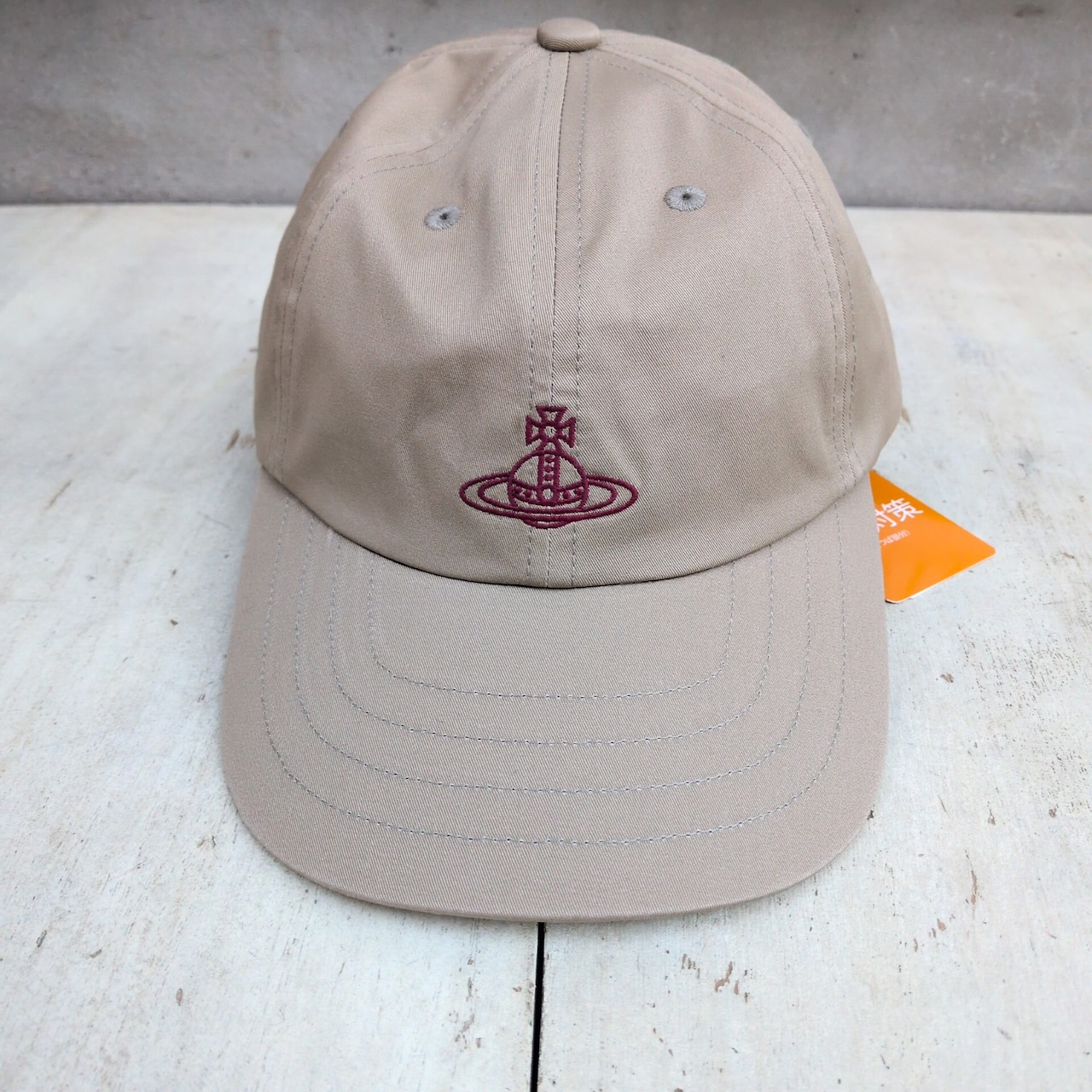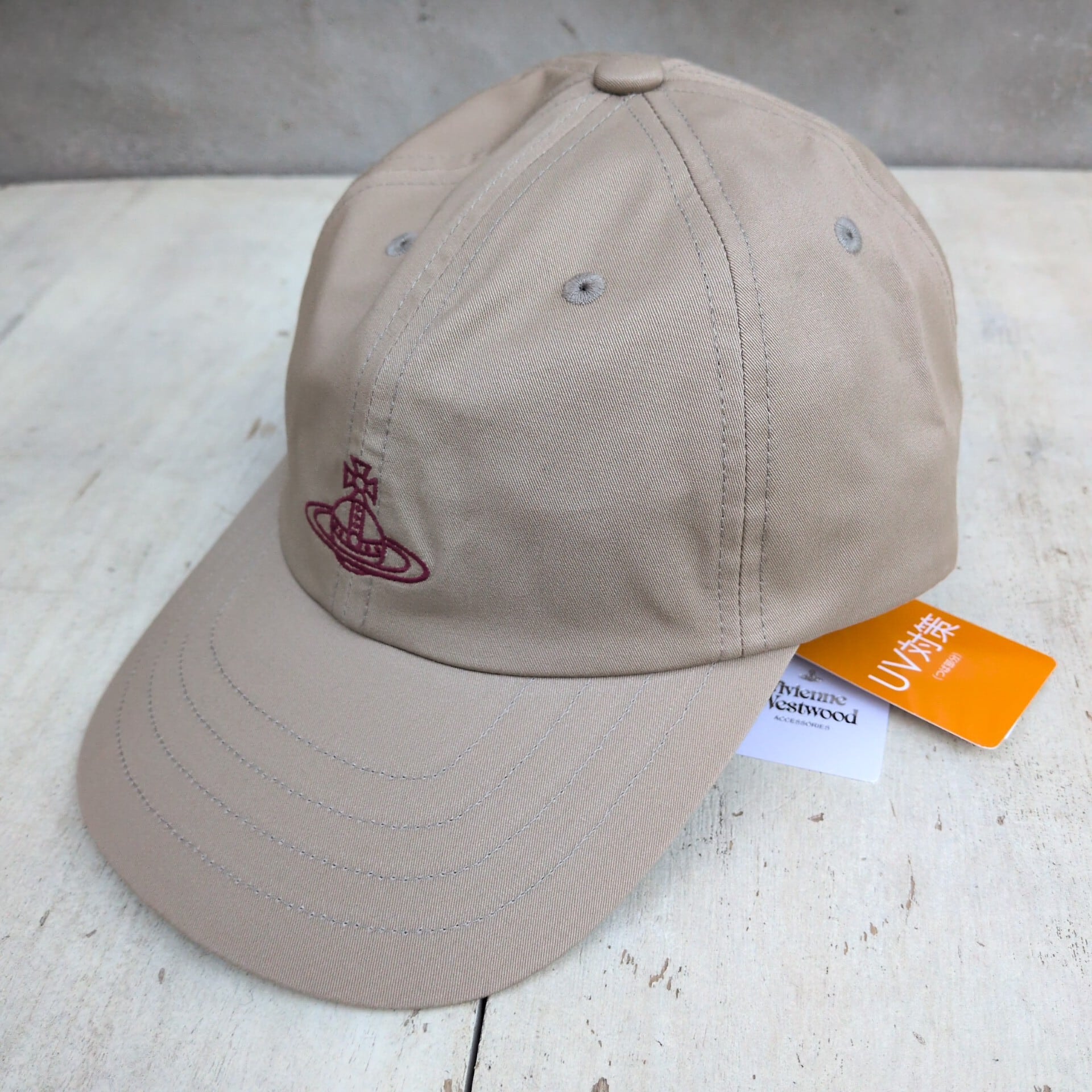 【サイズ調整可】新品/VW/ヴィヴィアンウエストウッドVivienne Westwood/デッドストック/44 Conduit Street London/ムーンバット/デザイナーズ/オーブ刺繍/刺繍ロゴ/コットンツイル/6パネル/ベースボールキャップ/ベージュ/T0614MBFS/0005/ | 古着屋RAINBOWFIELD Since 2006