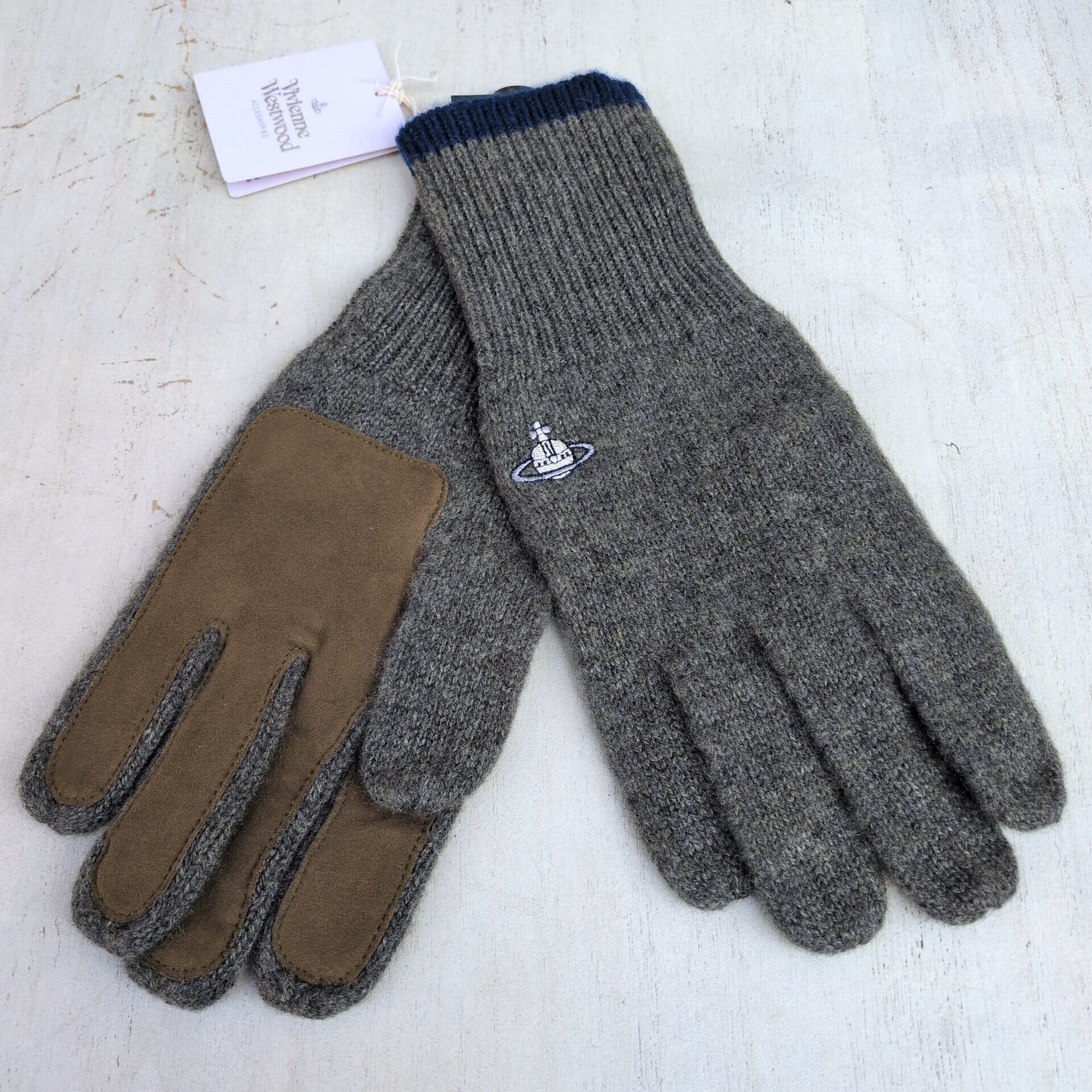 【カシミア100%】新品/VW/ヴィヴィアンウエストウッドVivienne Westwood/デッドストック/カシミヤ×レザー/オーブ刺繍/手袋/グレー系/TC08AFS3/0003/ | 古着屋RAINBOWFIELD Since 2006