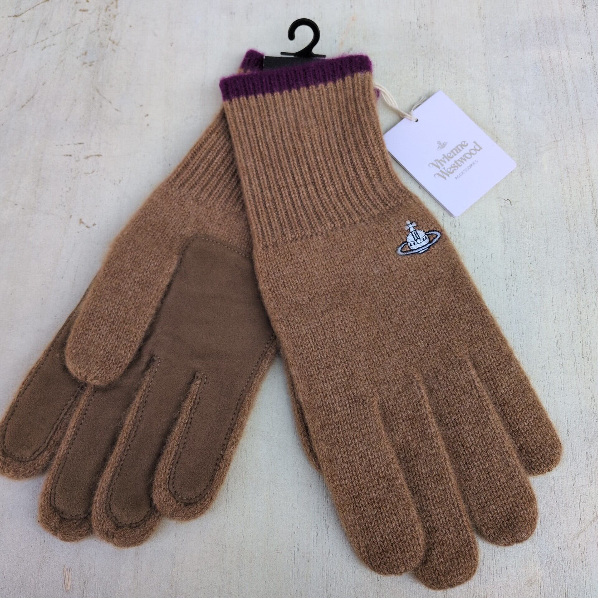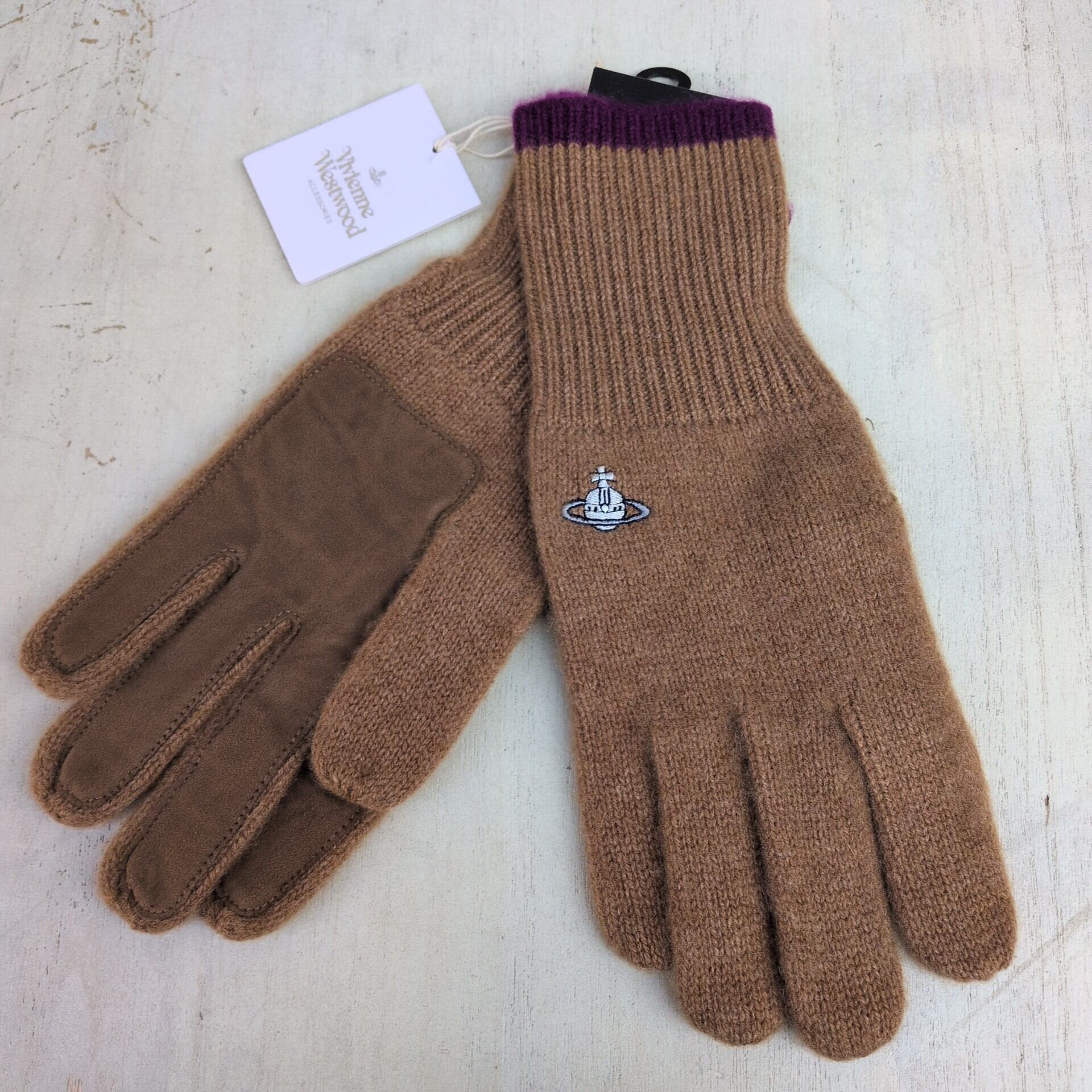【カシミア100%】新品/VW/ヴィヴィアンウエストウッドVivienne Westwood/デッドストック/カシミヤ×レザー/オーブ刺繍/手袋/茶系/TC08AFS3/0003/ | 古着屋RAINBOWFIELD Since 2006