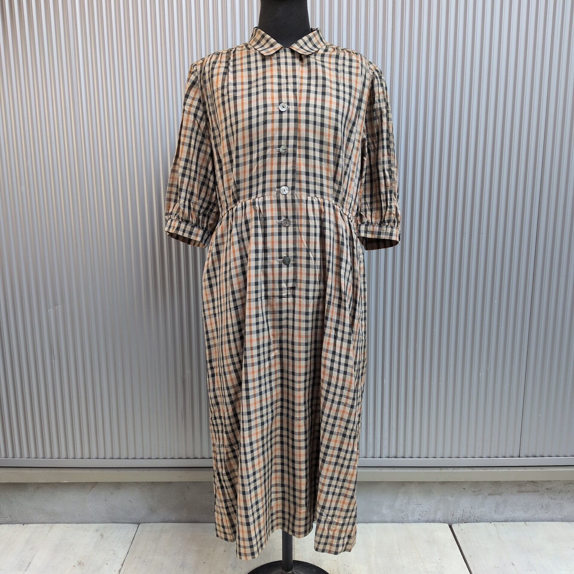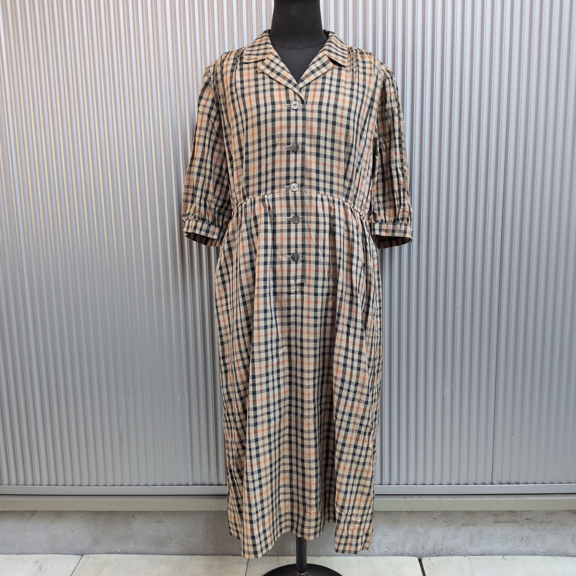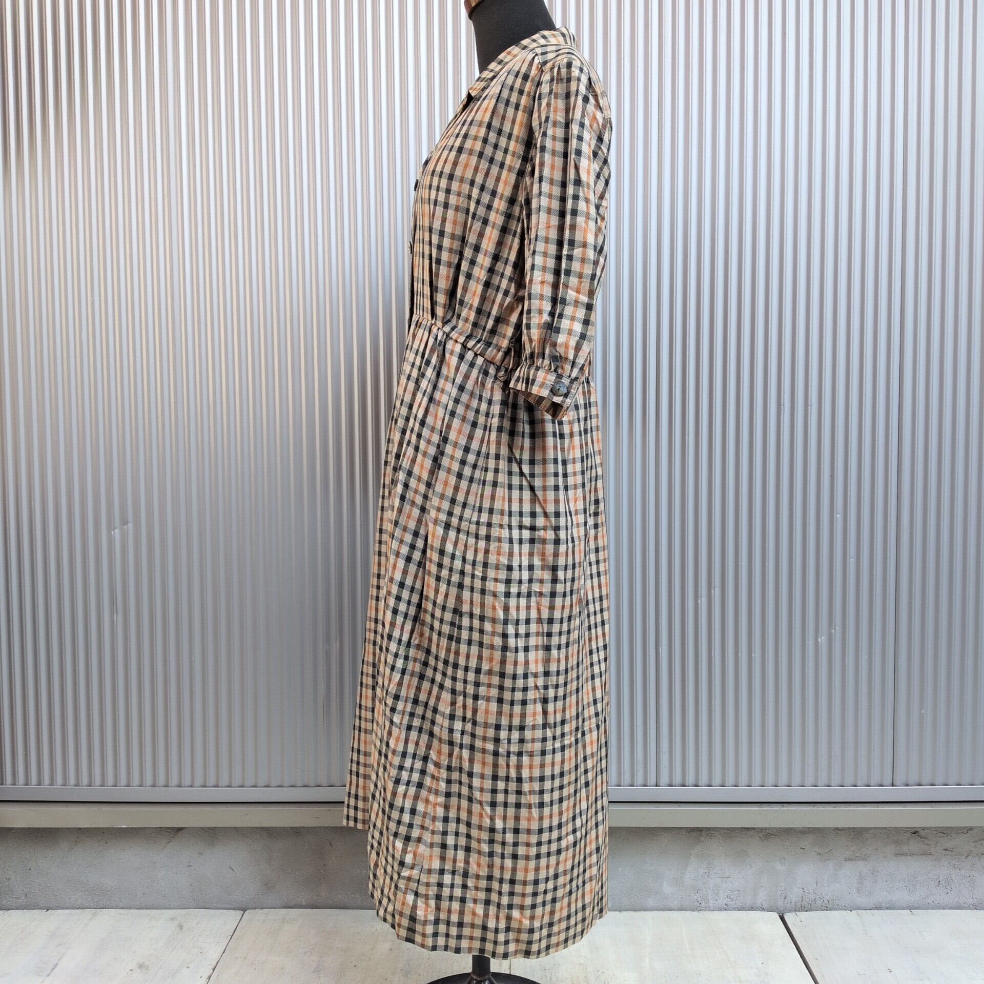 【80s/90s/絹100%】ダックスDAKS/ヴィンテージ/ビンテージ/レトロ古着/チェック柄/柄物/シルク/半袖/ロング/シャツワンピース/TK01YR10/001/ | 古着屋RAINBOWFIELD Since 2006