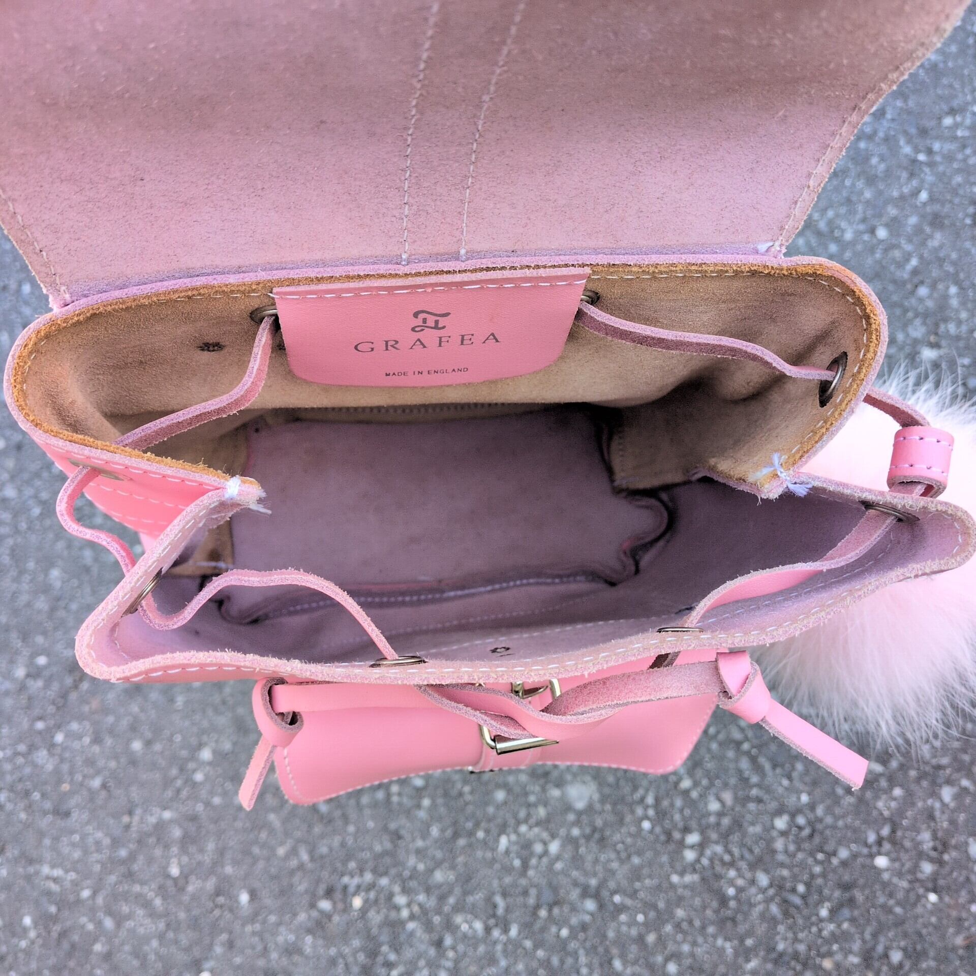 【イングランド製】グラフィアGRAFEA/BABY BACKPACKS/ハンドメイド/オールレザー/ポンポン付き/ベイビー バックパック/ミニリュック/ピンク/UB15KK16/0001/ | 古着屋RAINBOWFIELD Since 2006