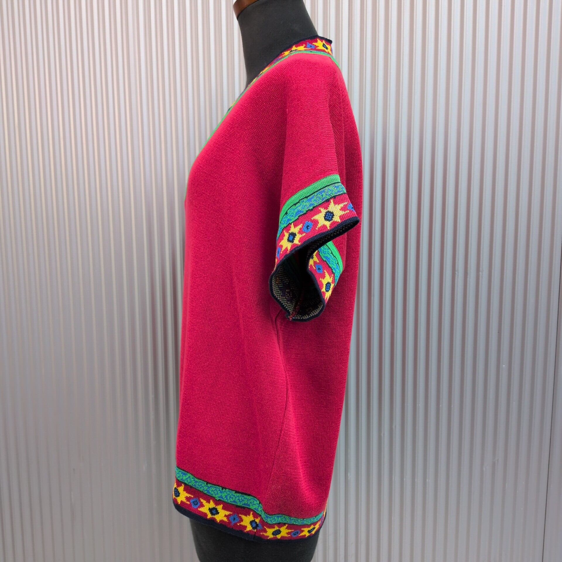 【稀少/イタリア製】美品/ランバンLANVIN PARIS/ヴィンテージ/ビンテージ/古着/Vネック/半袖/コットンニット/セーター/44/赤/TL07KE5/003/ | 古着屋RAINBOWFIELD Since 2006