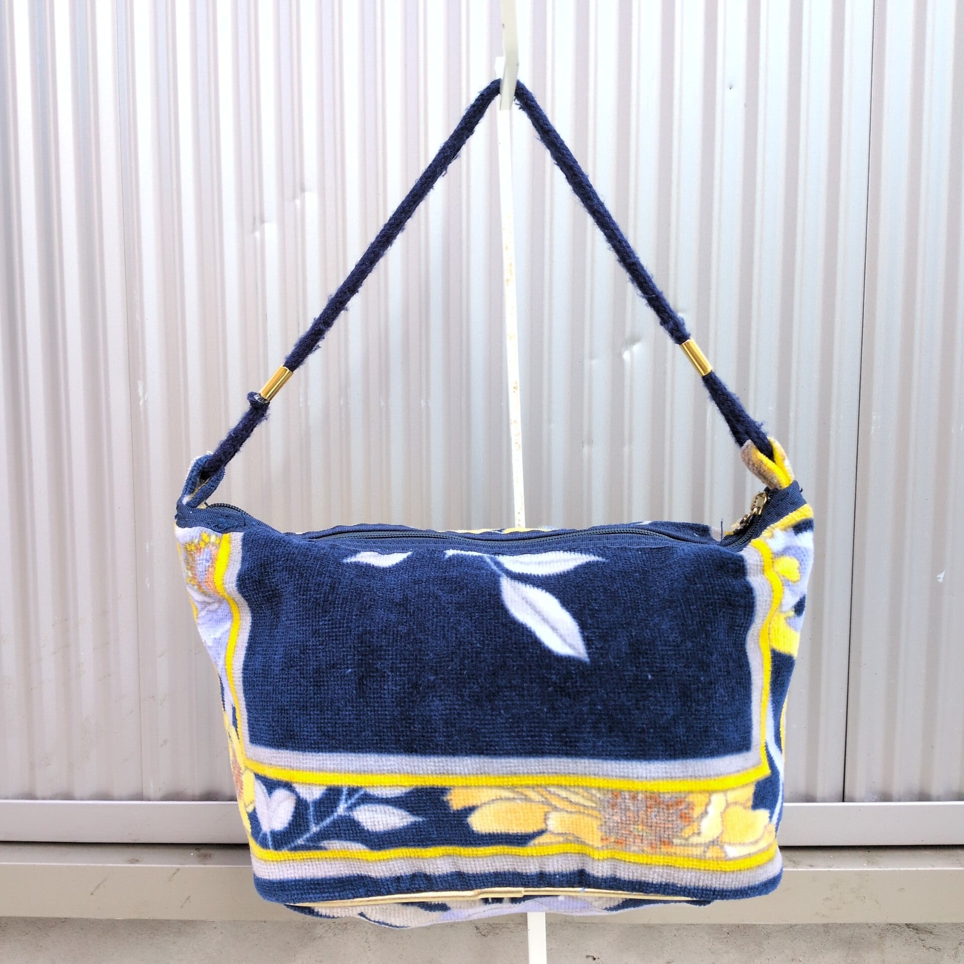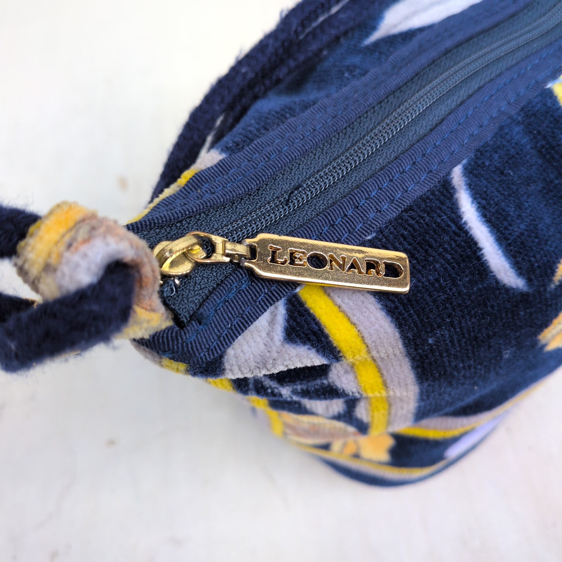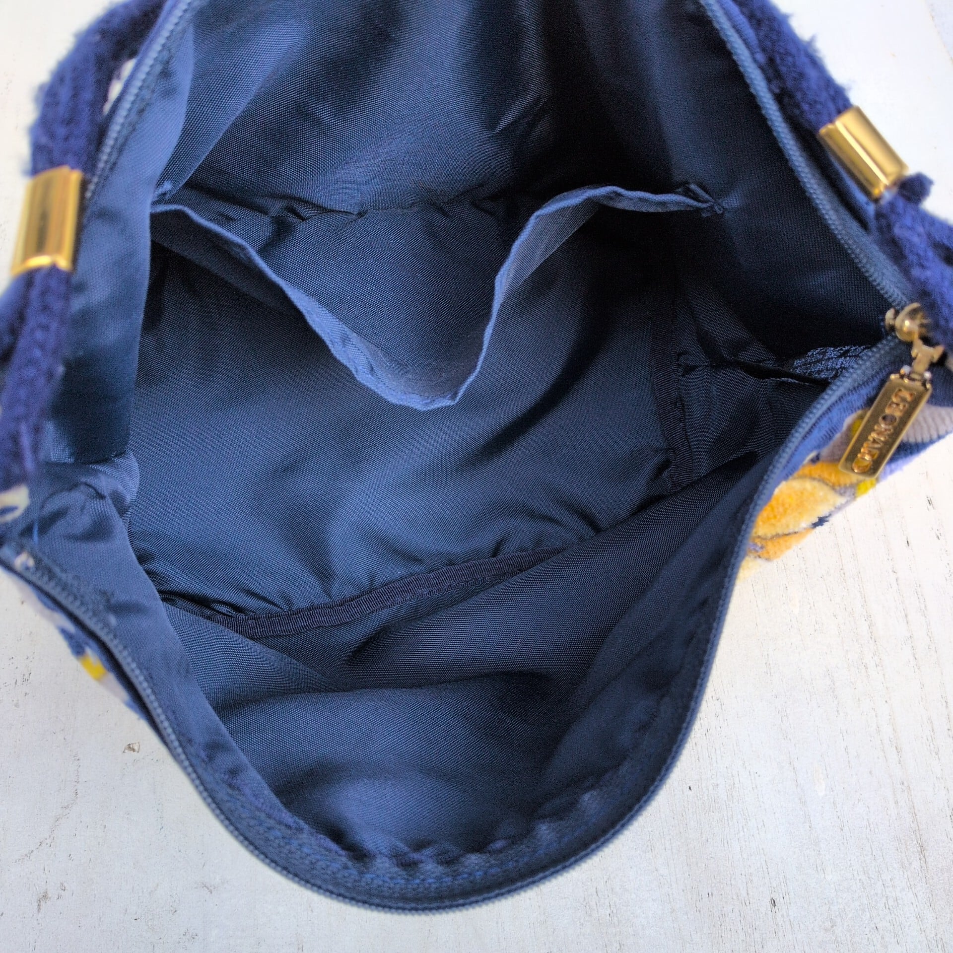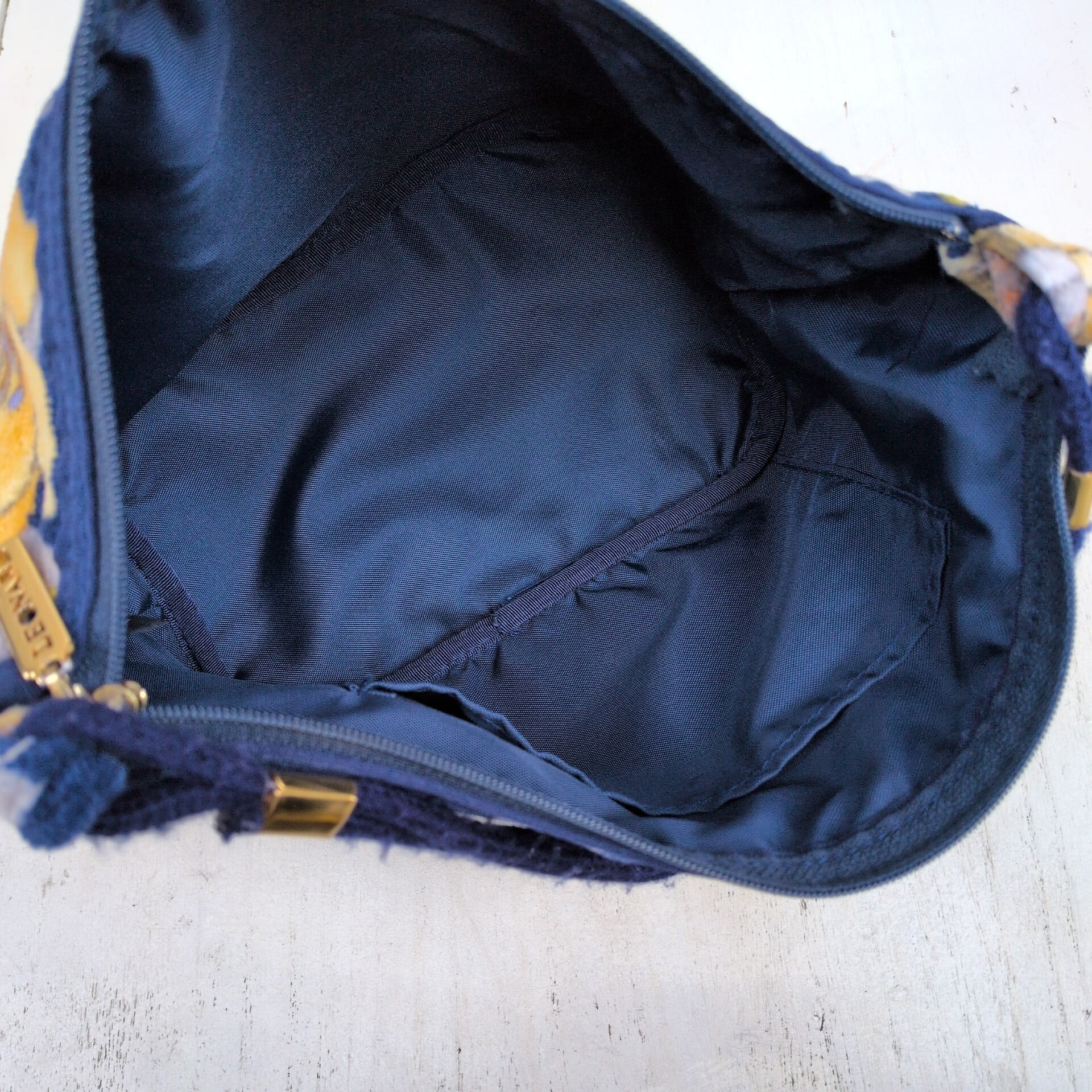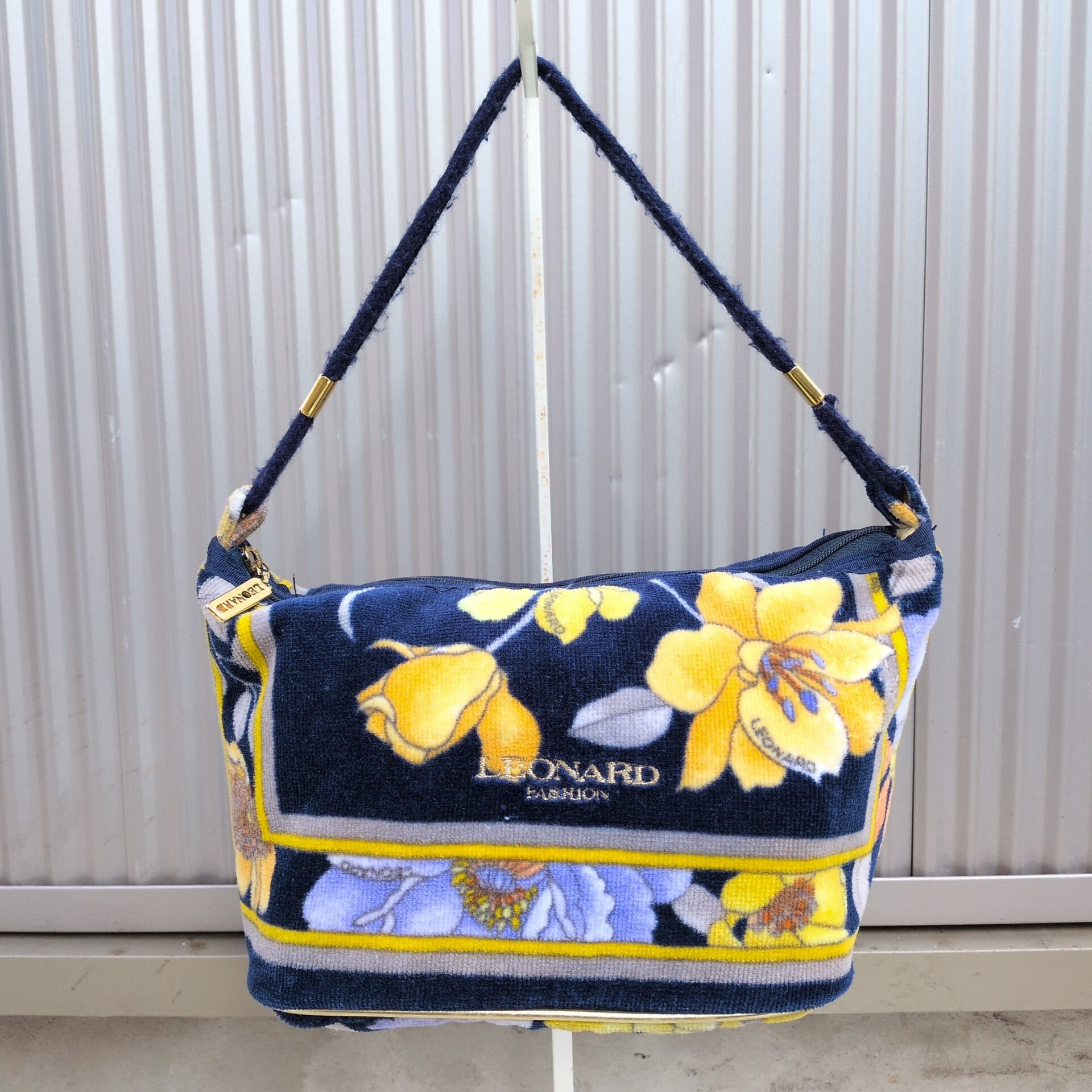 レオナールLEONARD FASHION/ビンテージ/ヴィンテージ/レトロ古着/刺繍ロゴ/花柄/パイル地/ハンドバッグ/ネイビー/UB15MNI2/005/ | 古着屋RAINBOWFIELD Since 2006
