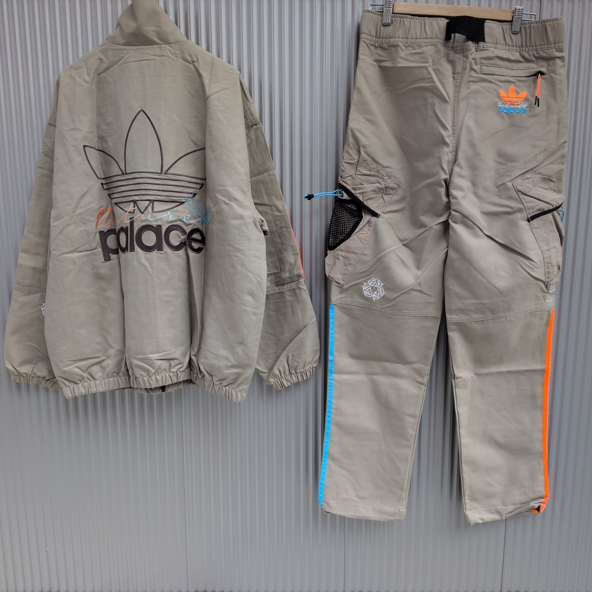 【別注/稀少/セットアップ】新品/パレス スケートボードPalace Skateboards × アディダスadidas/デッドストック/ビッグシルエット/オーバーサイズ/ワーク/ストリート/HM9196/Nature Track Top Blanch Cargo/HM9195/Nature Pants/コットンジャケット/トラックトップ/ブルゾン/カーゴパンツ/セットアップ/O/ベージュ/TL112/00002/ | 古着屋RAINBOWFIELD Since 2006
