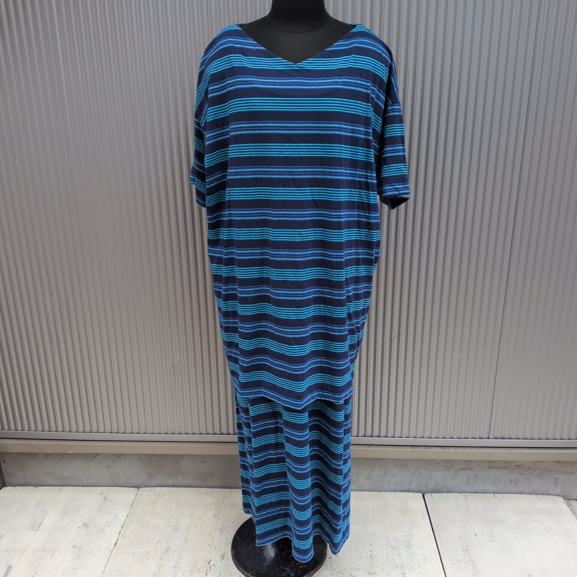 【稀少/90s/フィンランド製】マリメッコmarimekko/マルヤスナMARJA SUNA/ヴィンテージ/ビンテージ/古着/北欧/コットン/ボーダー/マリン/Tシャツ/マキシ丈/キャミワンピース/アンサンブル/L/TK22UAK4/003/ | 古着屋RAINBOWFIELD Since 2006