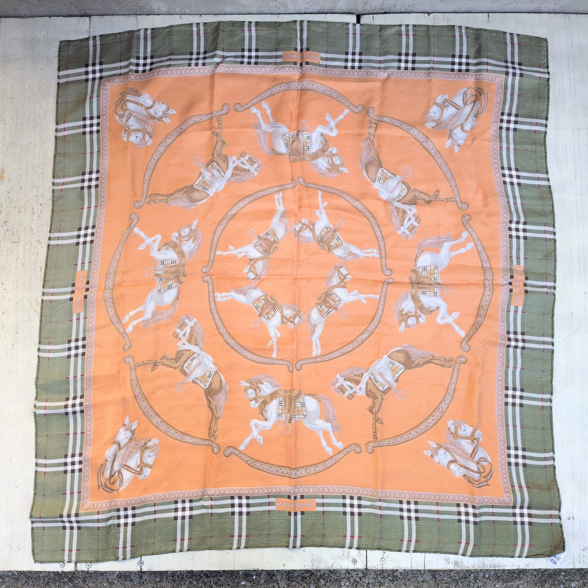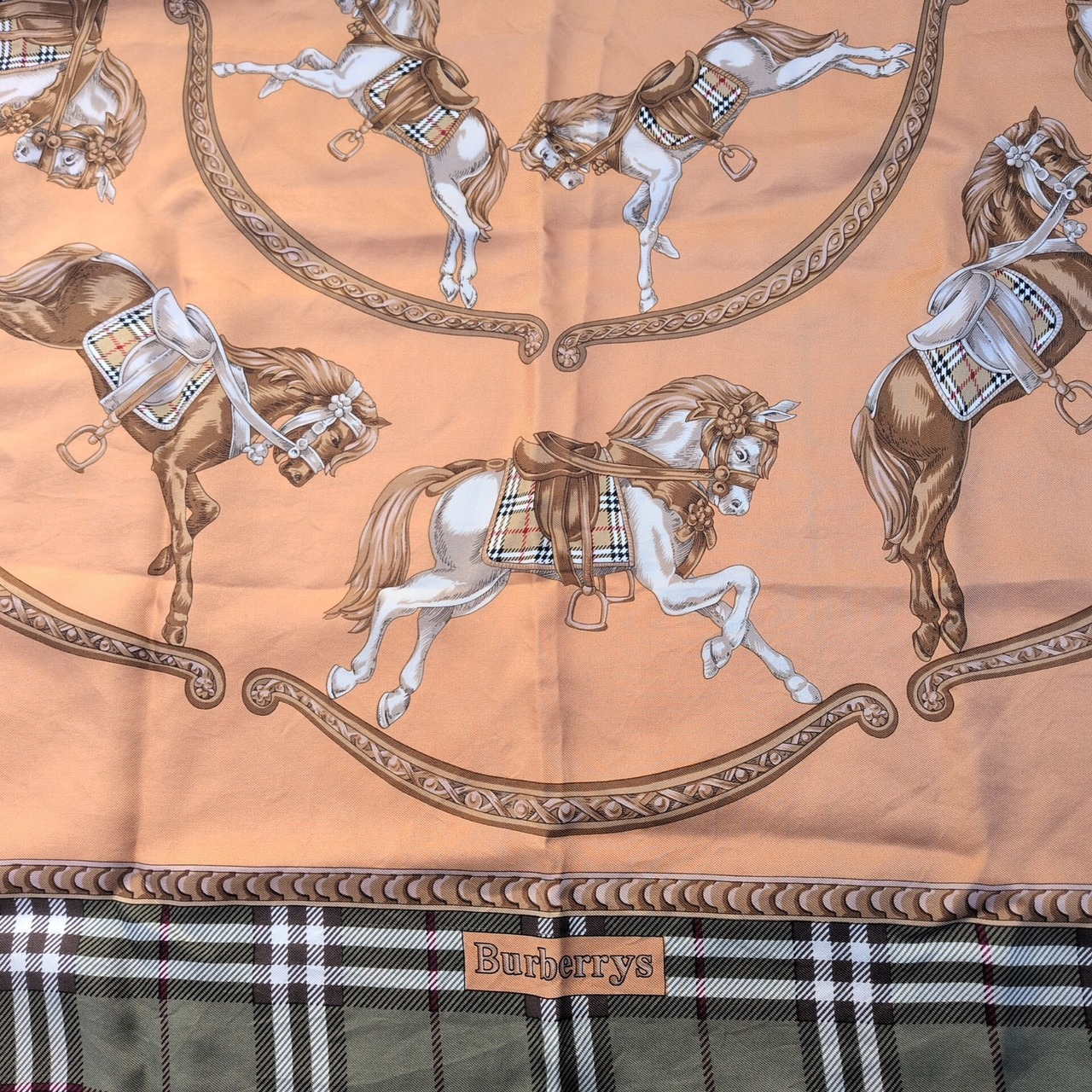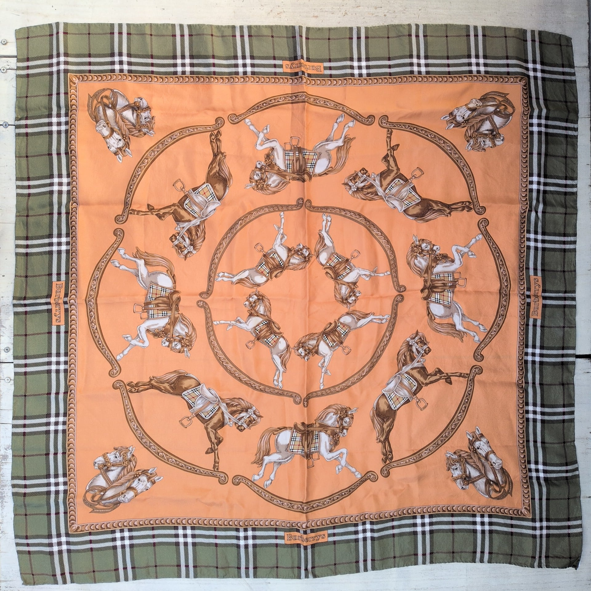 【80s/90s】バーバリーBurberry/バーバリーズBurberrys/ヴィンテージ/ビンテージ/古着/絹/シルク/大判/スクエア/ノバチェック/馬柄/スカーフ/UB15MNI8/001/ | 古着屋RAINBOWFIELD Since 2006