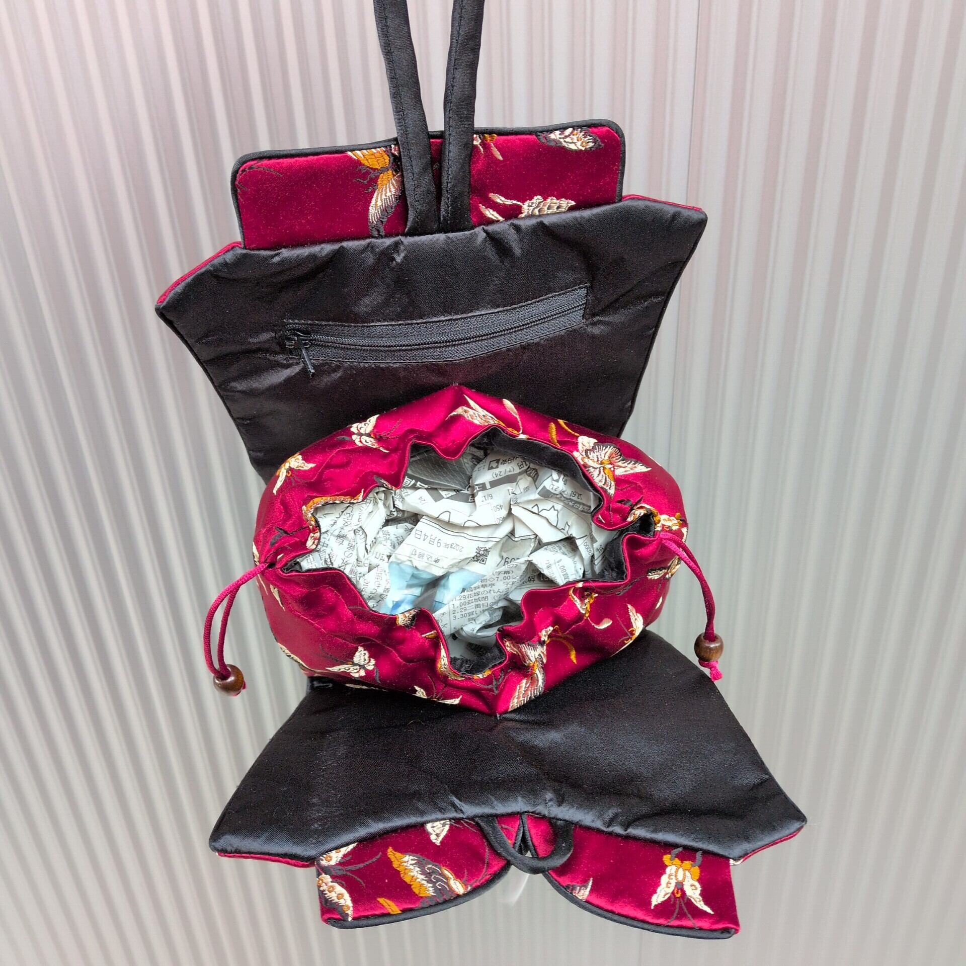 ★チャイナ服で作られたかわいいハンドバッグです。