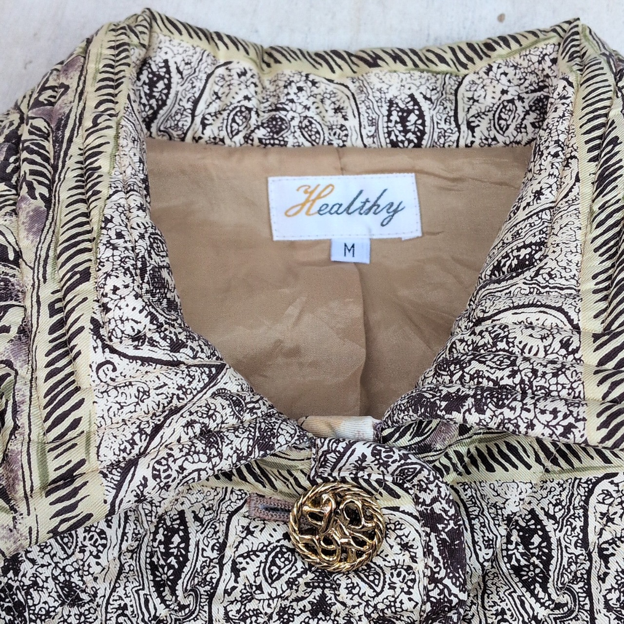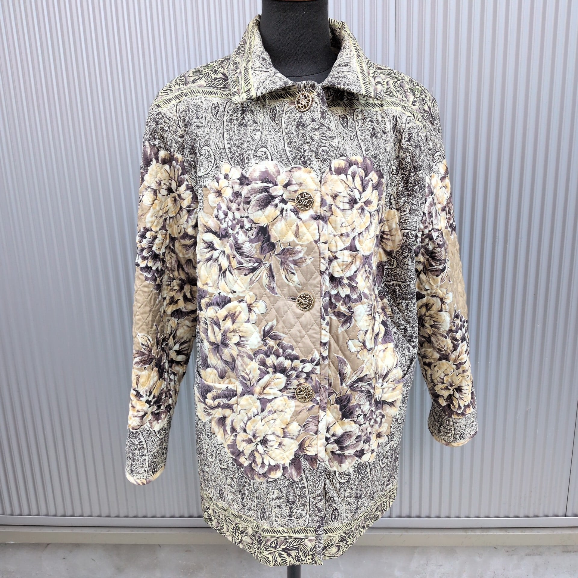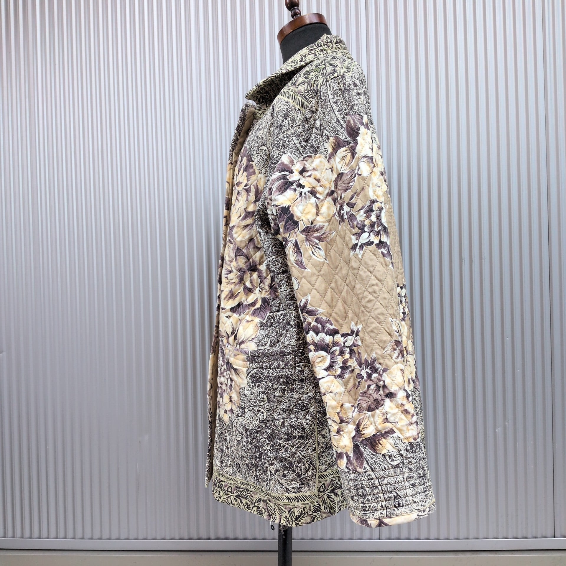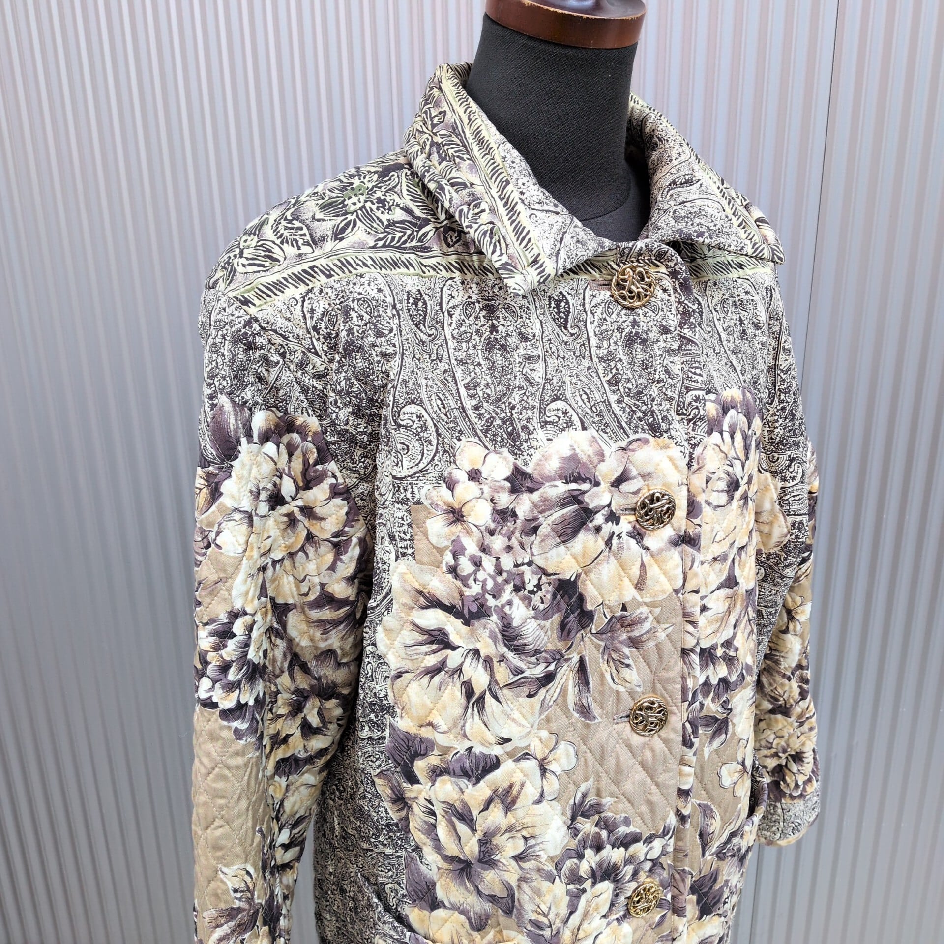 【絹100%】美品/used/古着/オーバーサイズ/ビッグシルエット/金ボタン/シルク/中綿/花柄/総柄/キルティングジャケット/キルティングコート/M/ | 古着屋RAINBOWFIELD Since 2006