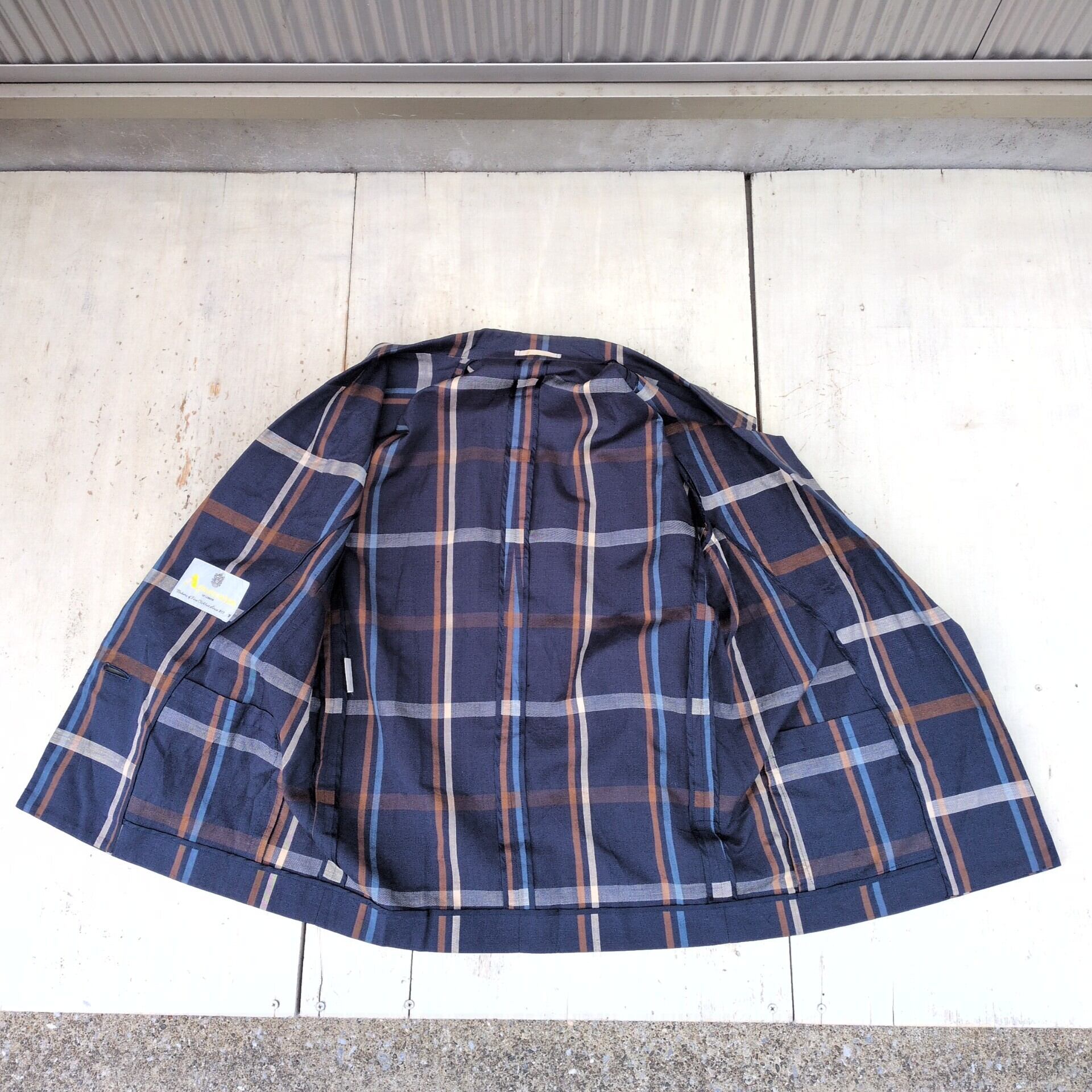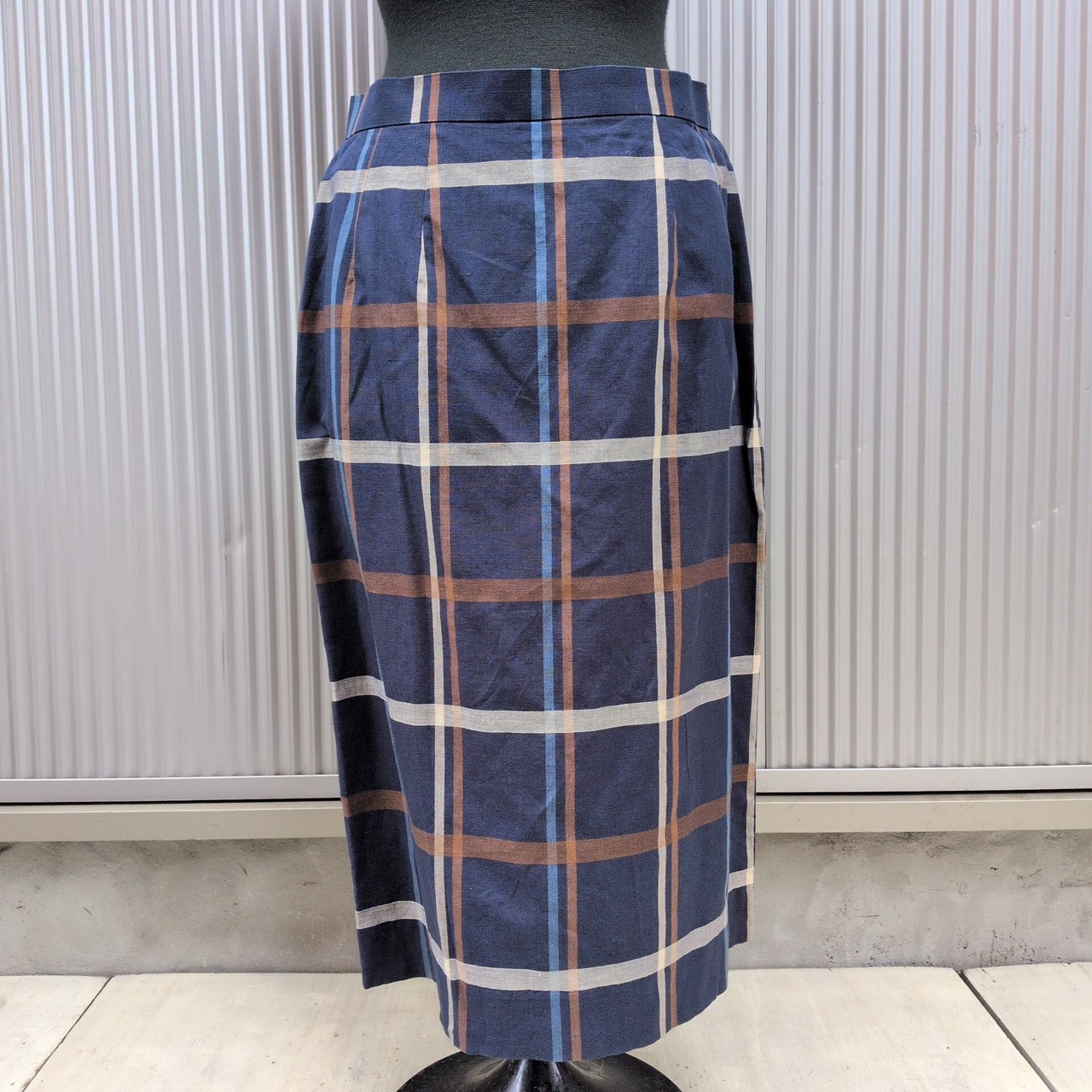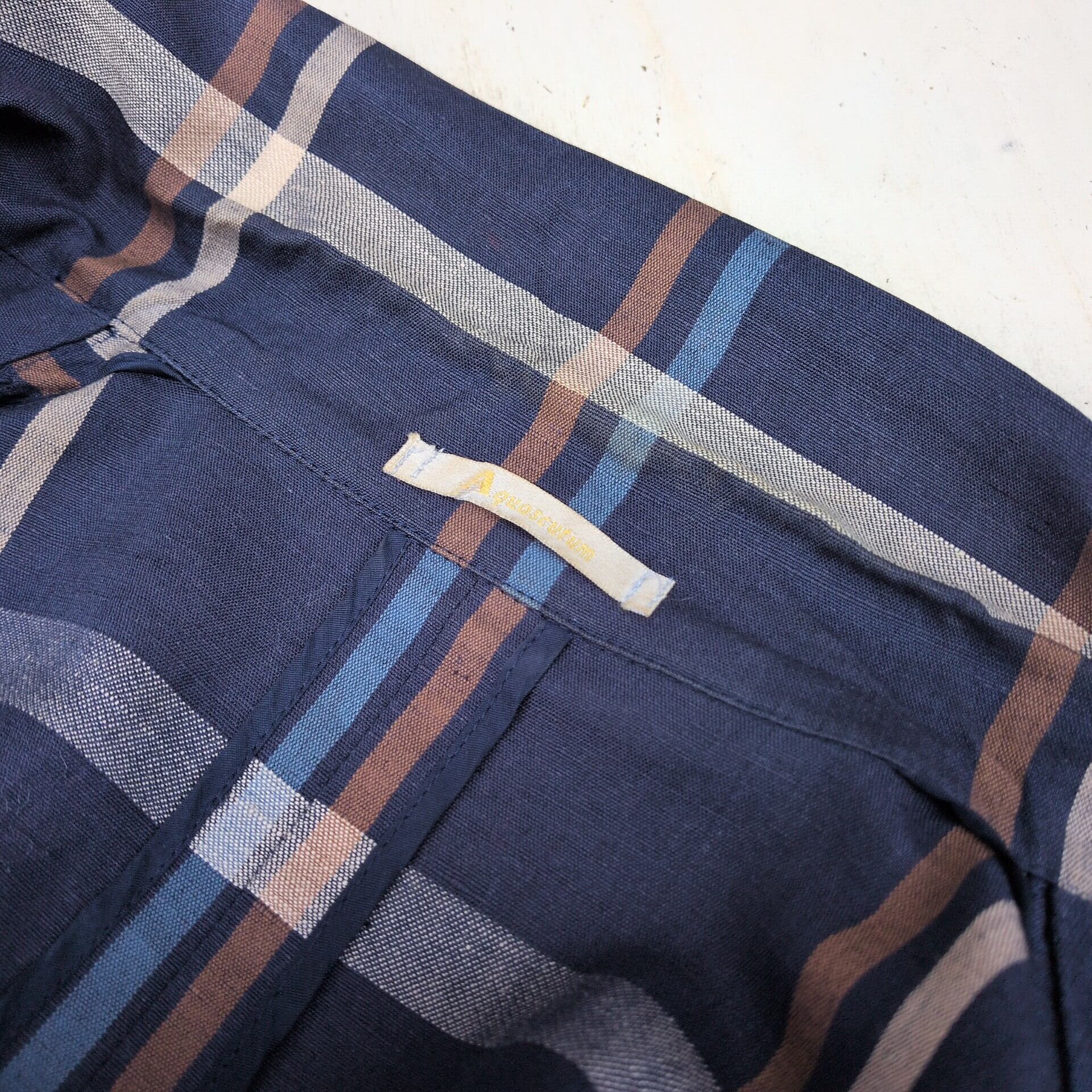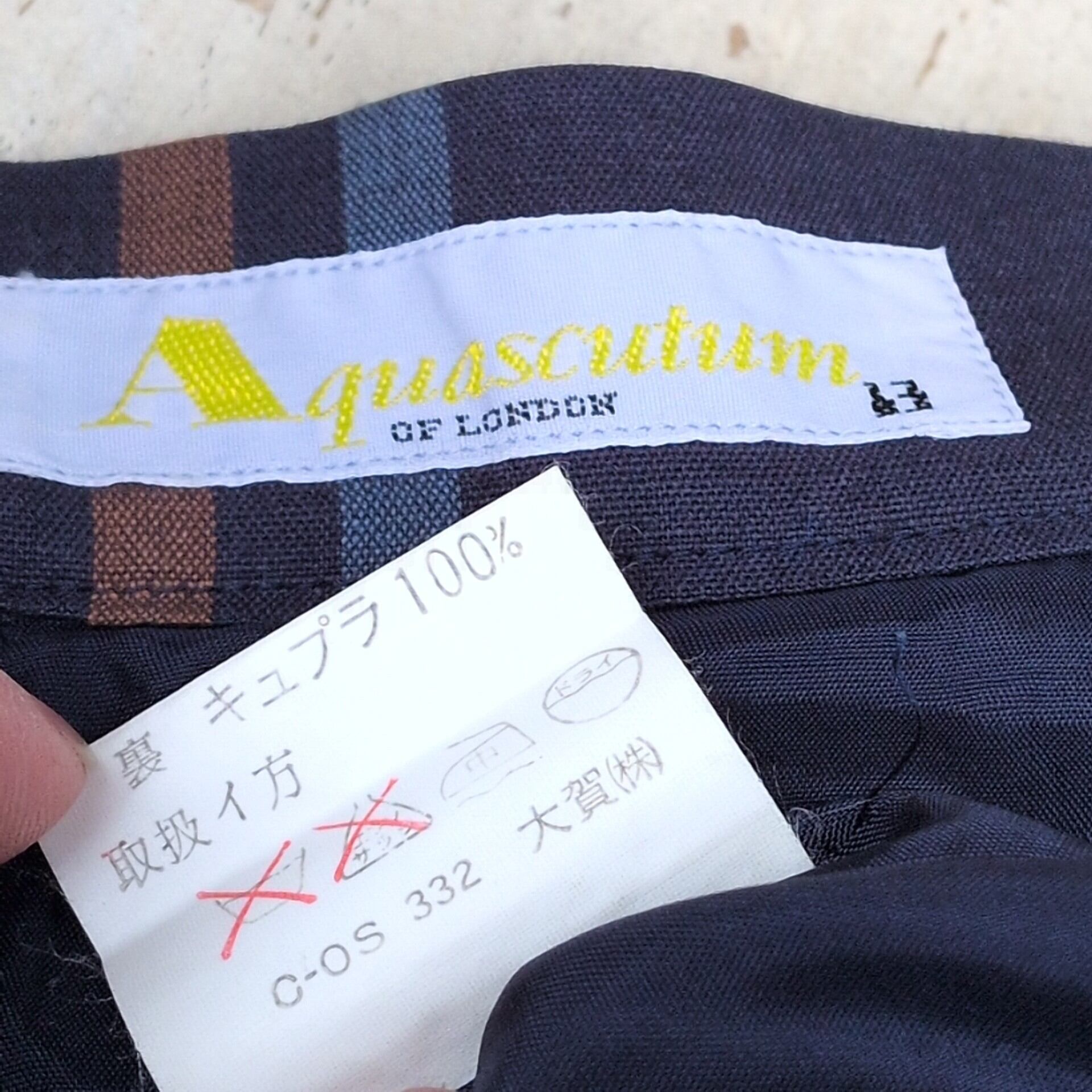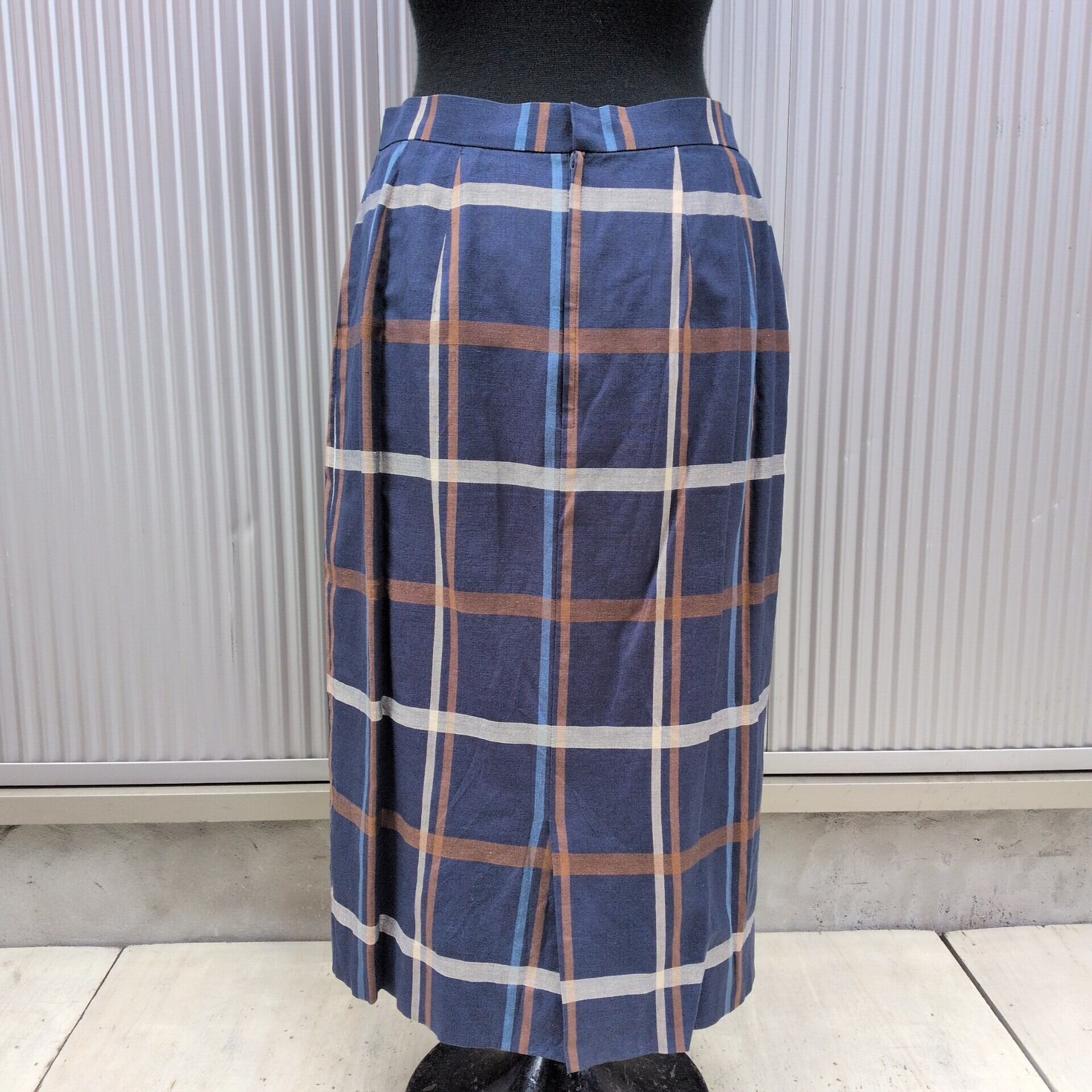 美品/アクアスキュータムAquascutum OF LONDON/ビンテージ/ヴィンテージ/古着/チェック柄/リネンコットン/ジャケット/スカート/スーツ/上下/セットアップ/ネイビー/UC07YR3/002/ | 古着屋RAINBOWFIELD Since 2006