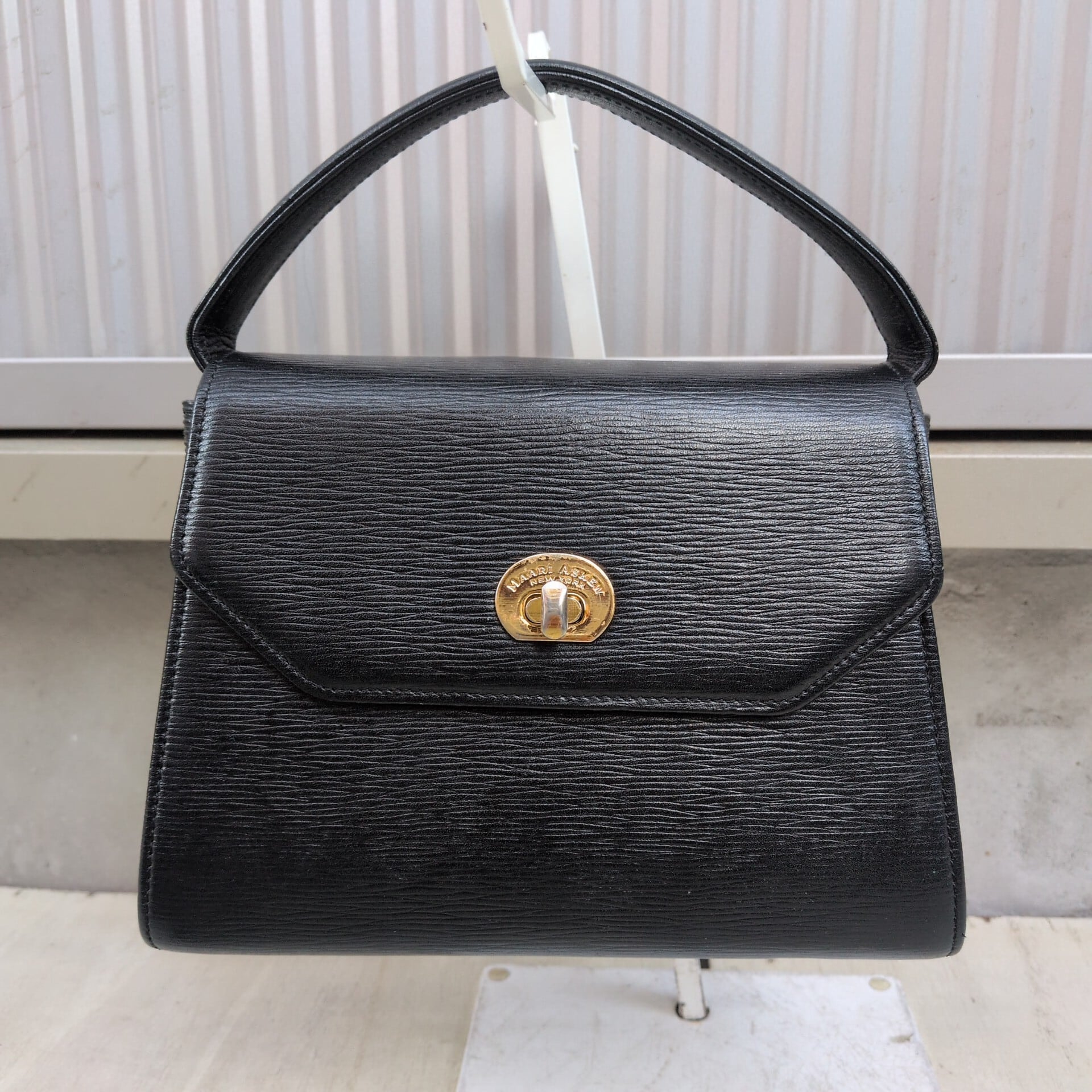 【稀少/2way/〜90s】マリーアスキューMAARI ASKEW NEW YORK/ビンテージ/ヴィンテージ/古着/レザー/ターンロック/ハンドバッグ/ショルダーバッグ/黒/UC07YR7/051/ | 古着屋RAINBOWFIELD Since 2006