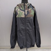 ★迷彩パターンをヨークで切り替えロゴを前後にプリントしたウインドブレーカー。