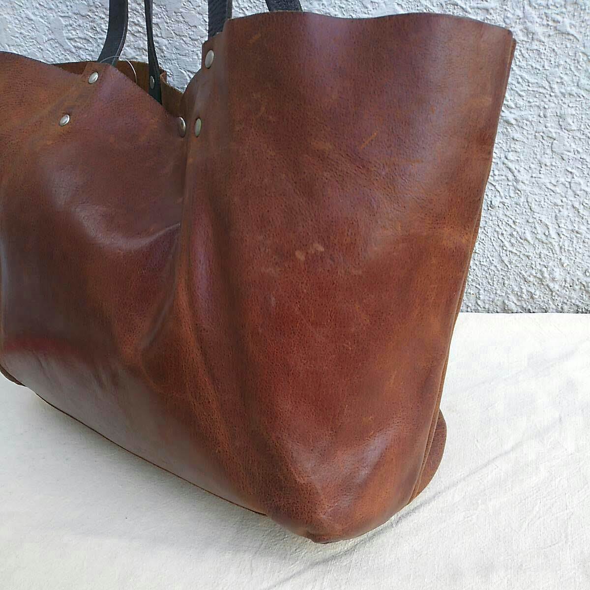 【古着】牛革/レザー/トートバッグ/茶×黒/
