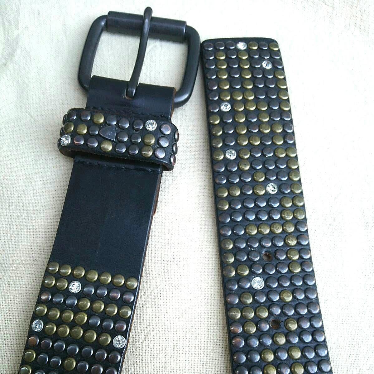 エイチティーシーHTCハリウッドトレーディングカンパニー/牛革/レザー/7連/スワロフスキー/スタッズベルト/黒/M/