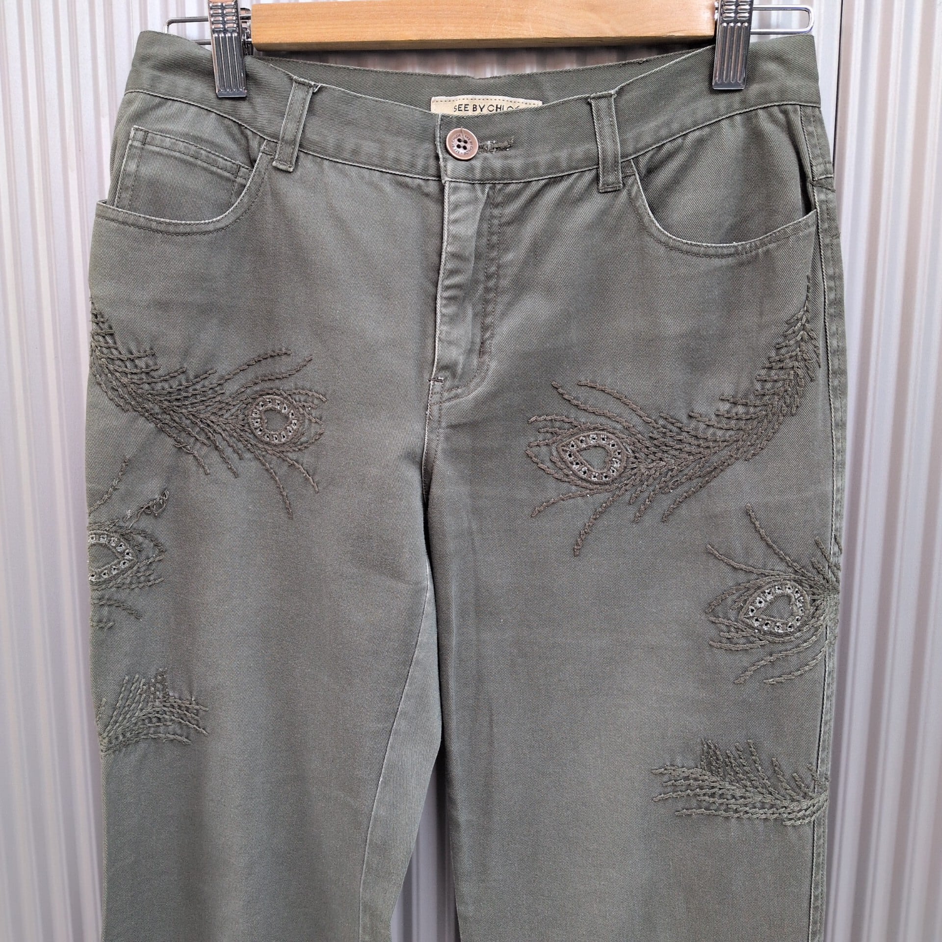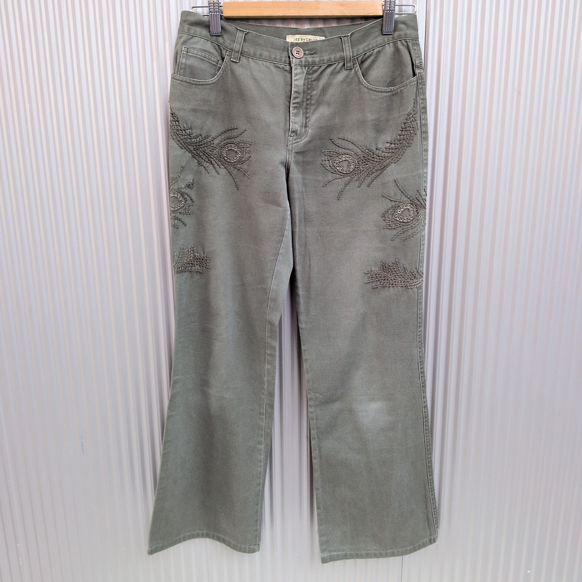 【稀少/00s/イタリア製】シーバイクロエSee By Chloe Paris/クロエ/y2k/古着/刺繍/コットンツイル/フレア/チノパンツ/27/カーキ/GC26M4/0021/ | 古着屋RAINBOWFIELD Since 2006