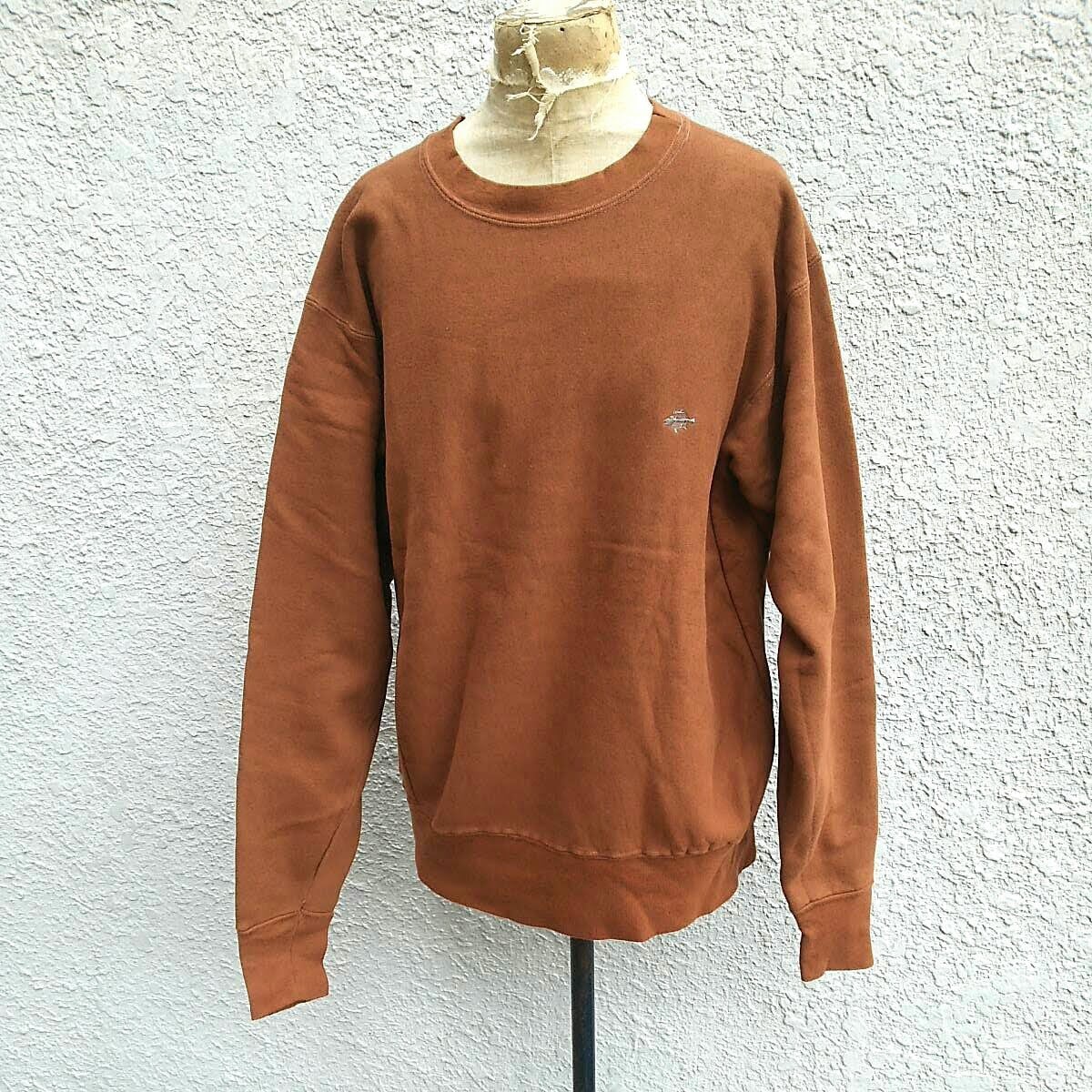 【USA製】美品/ブロンズエイジBRONZE AGE/アメリカ古着/スカルフィッシュ/フィッシュボーン/刺繍/スウェット/トレーナー/L/茶/