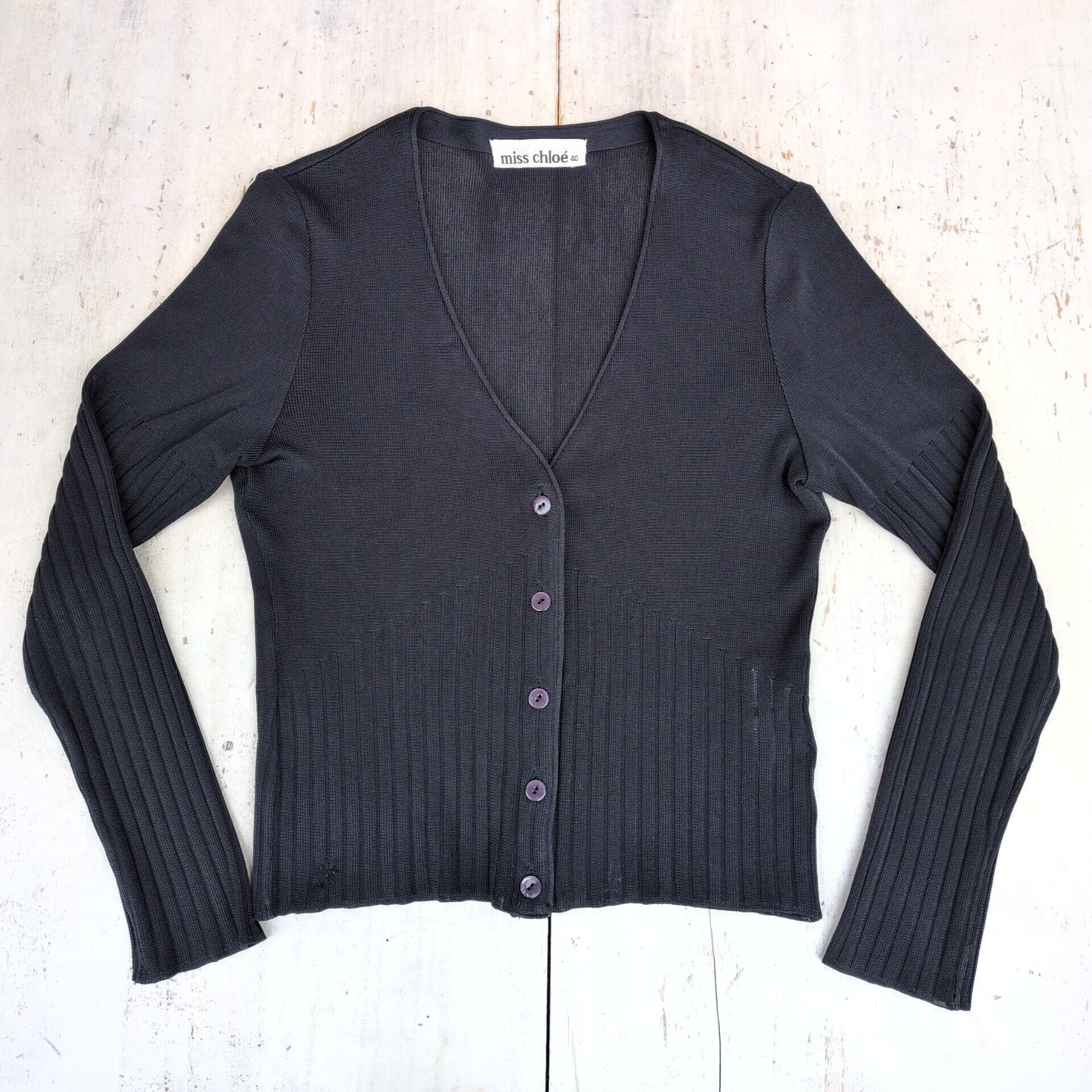 【80s/90s】ミスクロエMiss Chloe/クロエ/ビンテージ/ヴィンテージ/古着/コロネット商会/アクリルニット/長袖/ロングスリーブ/Vネック/カーディガン/40/黒系/ | 古着屋RAINBOWFIELD Since 2006